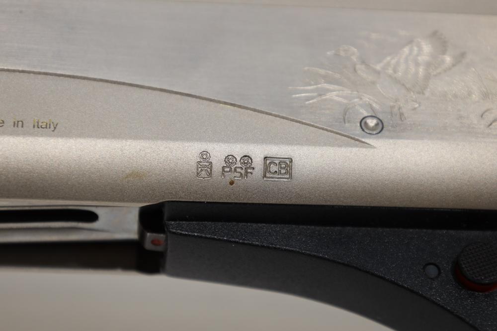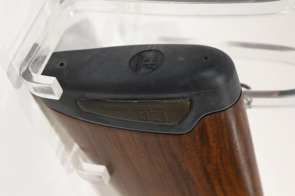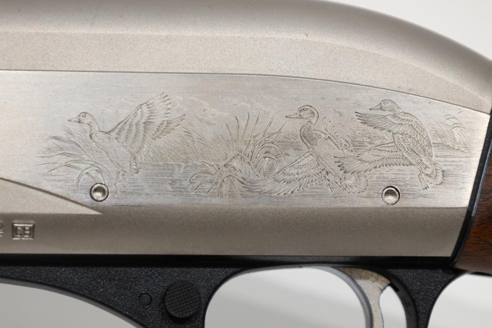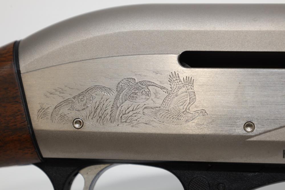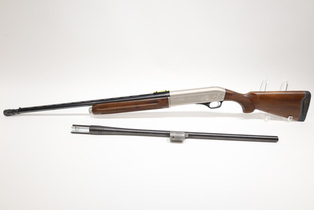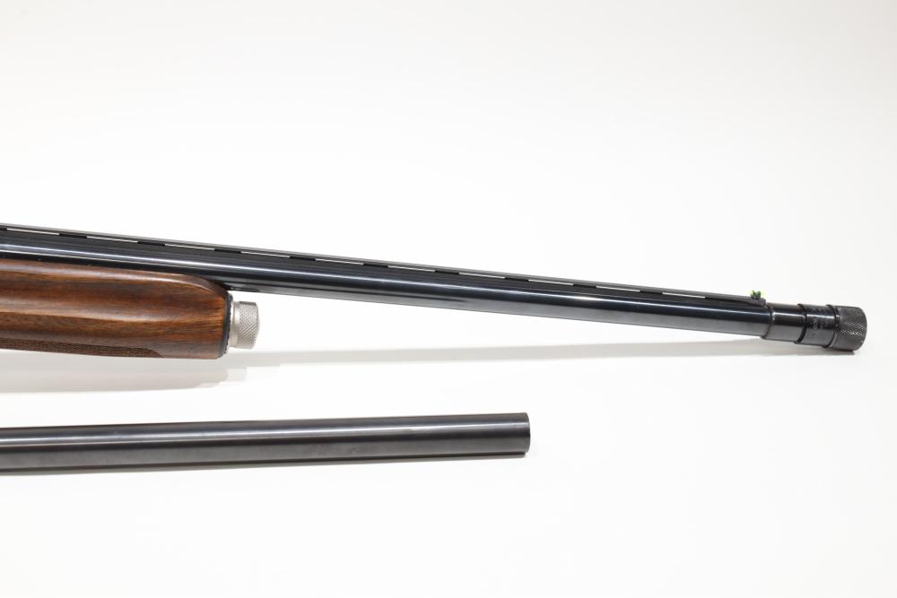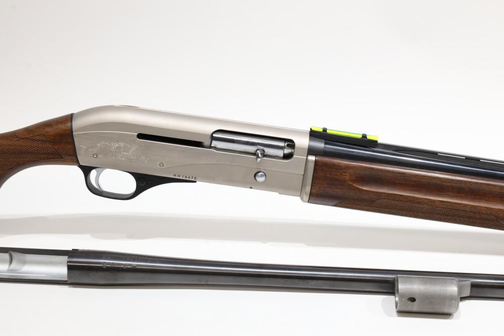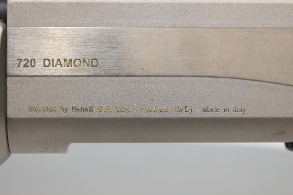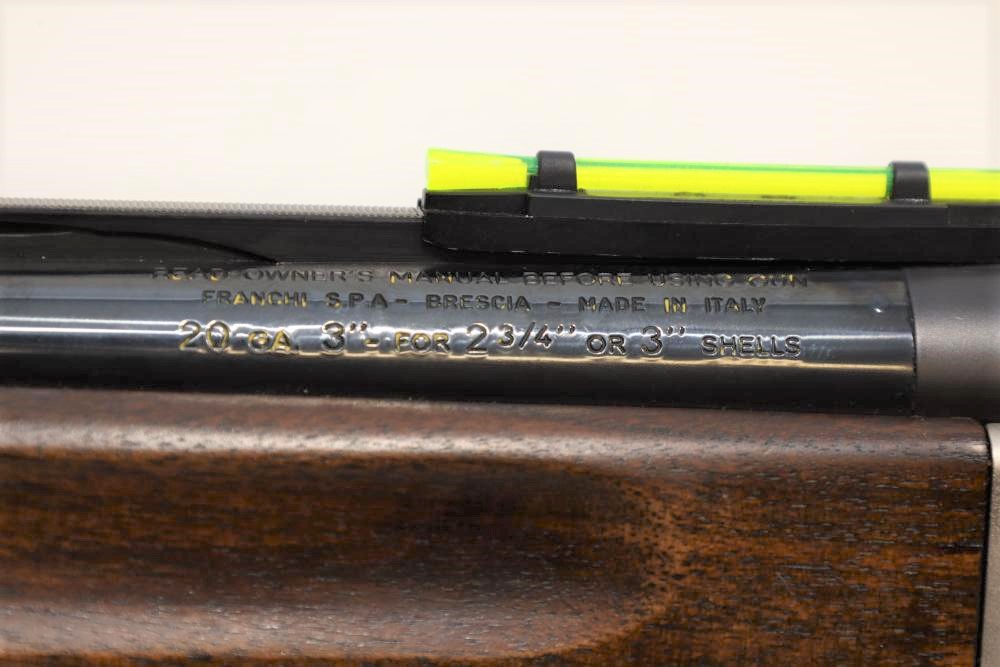 Franchi SPA Benelli model 720 Diamond 20 gauge semi automatic shotgun for 2 3/4" or 3" shells. With a checkered wood stock, fiberoptic sights, engraved frame, and adjustable choke. Also includes one P. Beretta 12 Ga shotgun barrel for 2 3/4" shells. Serial number HH19476. All lots are subject to all applicable laws at the time of transfer. NOTE: Semi automatic rifles and all handguns require a license in NYS. There is a $25 transfer fee per long gun. There is a $35 transfer fee per hand gun. The fee is only $20 if you fail the background check. If you fail, you are still required to make payment and then reconsign the gun to auction. FFL dealers are not exempt from these fees.