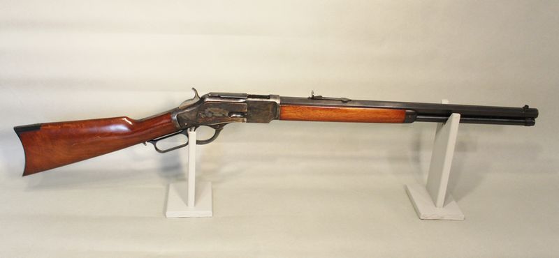 Cimarron Repeating Arms .45 caliber lever action rifle made in Italy based on King's Improvement patent 1866. serial no. 4722 All lots are subject to all applicable laws at the time of transfer. NOTE: Semi automatic rifles and all handguns require a license in NYS. There is a $25 transfer fee per long gun. There is a $35 transfer fee per hand gun. The fee is only $20 if you fail the background check. If you fail, you are still required to make payment and then reconsign the gun to auction. FFL dealers are not exempt from these fees.