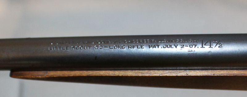 Stevens Arms Co. "Little Scout" .22 long rifle single shot rifle, 1907. No serial number visible at time of catalog. All lots are subject to all applicable laws at the time of transfer. NOTE: Semi automatic rifles and all handguns require a license in NYS. There is a $25 transfer fee per long gun. There is a $35 transfer fee per hand gun. The fee is only $20 if you fail the background check. If you fail, you are still required to make payment and then reconsign the gun to auction. FFL dealers are not exempt from these fees.