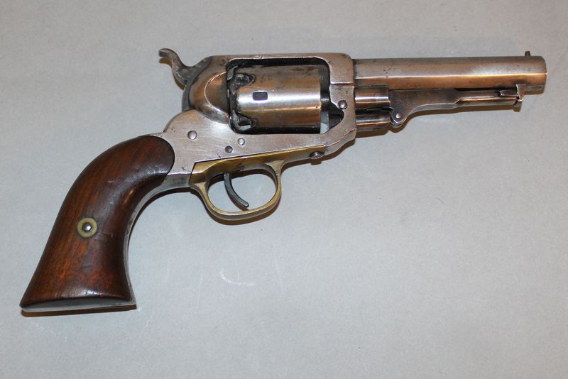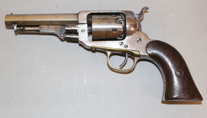 E. Whitney pocket revolver, mid 19th C. ball and cap. Appears to be functional. All lots are subject to all applicable laws at the time of transfer. NOTE: Semi automatic rifles and all handguns require a license in NYS. There is a $25 transfer fee per long gun. There is a $35 transfer fee per hand gun. The fee is only $20 if you fail the background check. If you fail, you are still required to make payment and then reconsign the gun to auction. FFL dealers are not exempt from these fees.