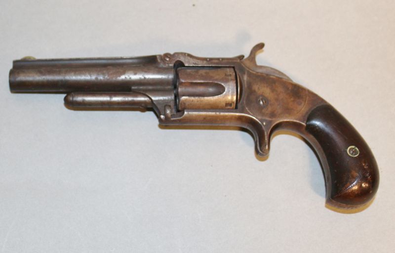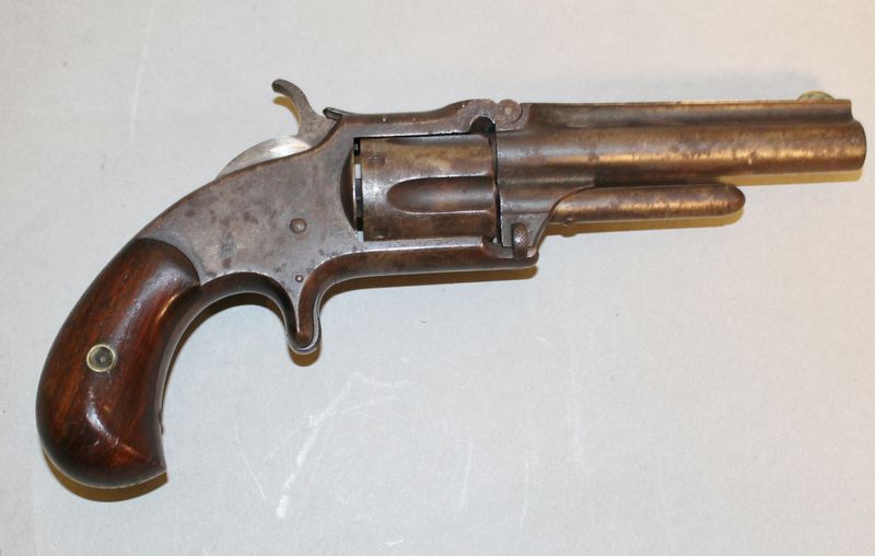 19th C. Smith & Wesson Model 1 revolver, caliber unk. All lots are subject to all applicable laws at the time of transfer. NOTE: Semi automatic rifles and all handguns require a license in NYS. There is a $25 transfer fee per long gun. There is a $35 transfer fee per hand gun. The fee is only $20 if you fail the background check. If you fail, you are still required to make payment and then reconsign the gun to auction. FFL dealers are not exempt from these fees.