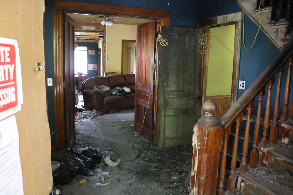 Single family residence, 2 story, Old style, built 1895+/-, 1844+/- sq. ft., 7BR/2BA, porches, detached garage. Fire damage. Corrective Action Statement required. |