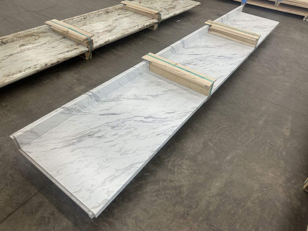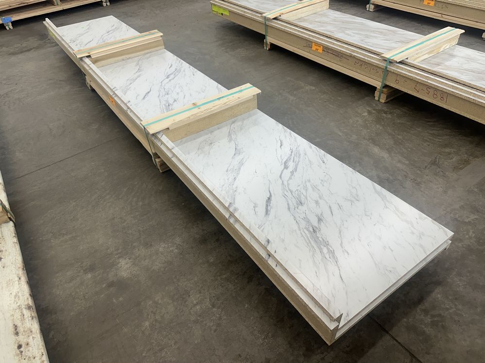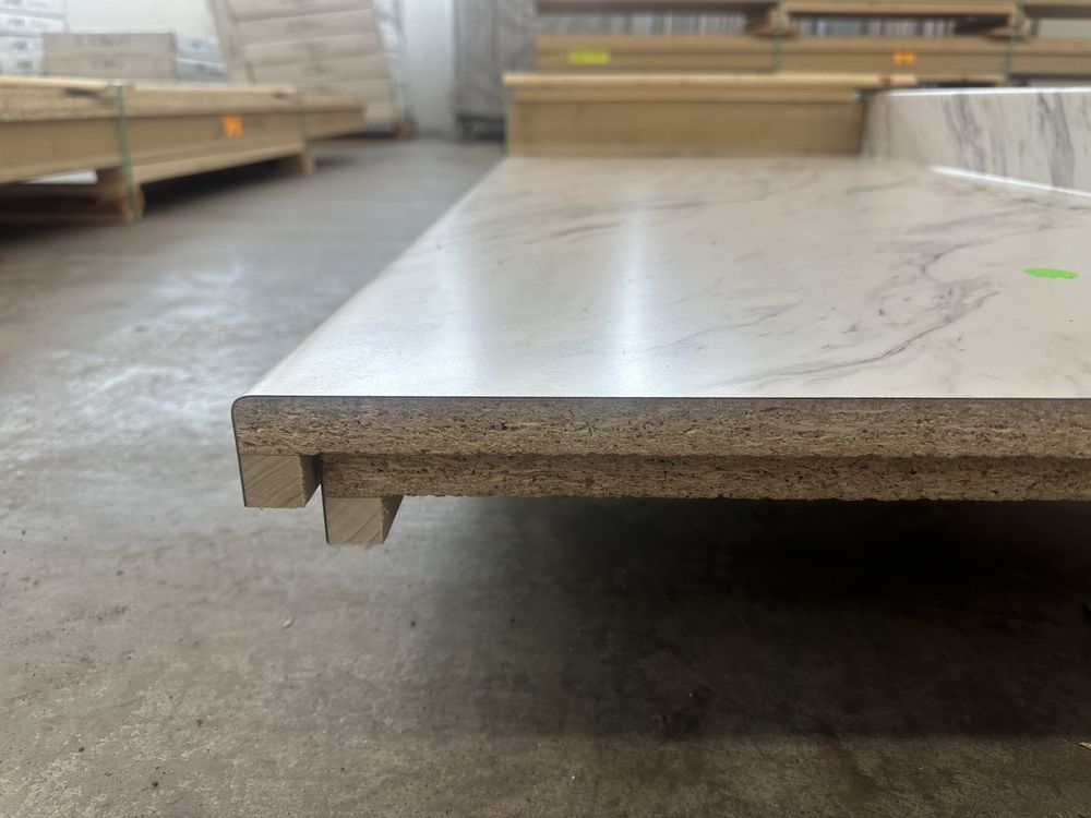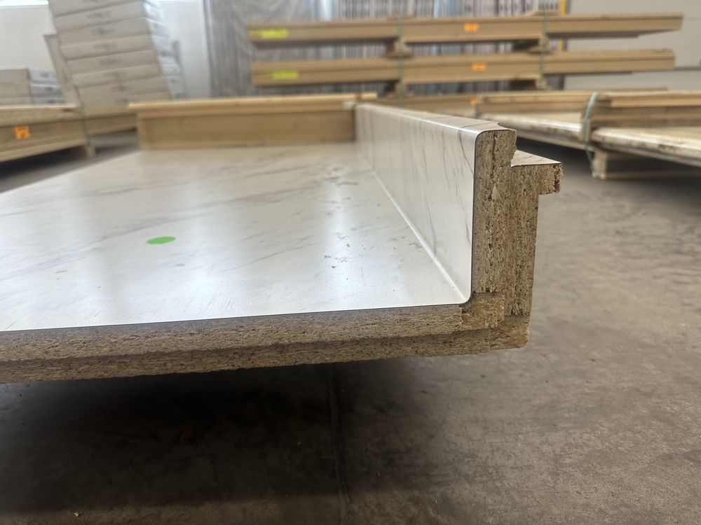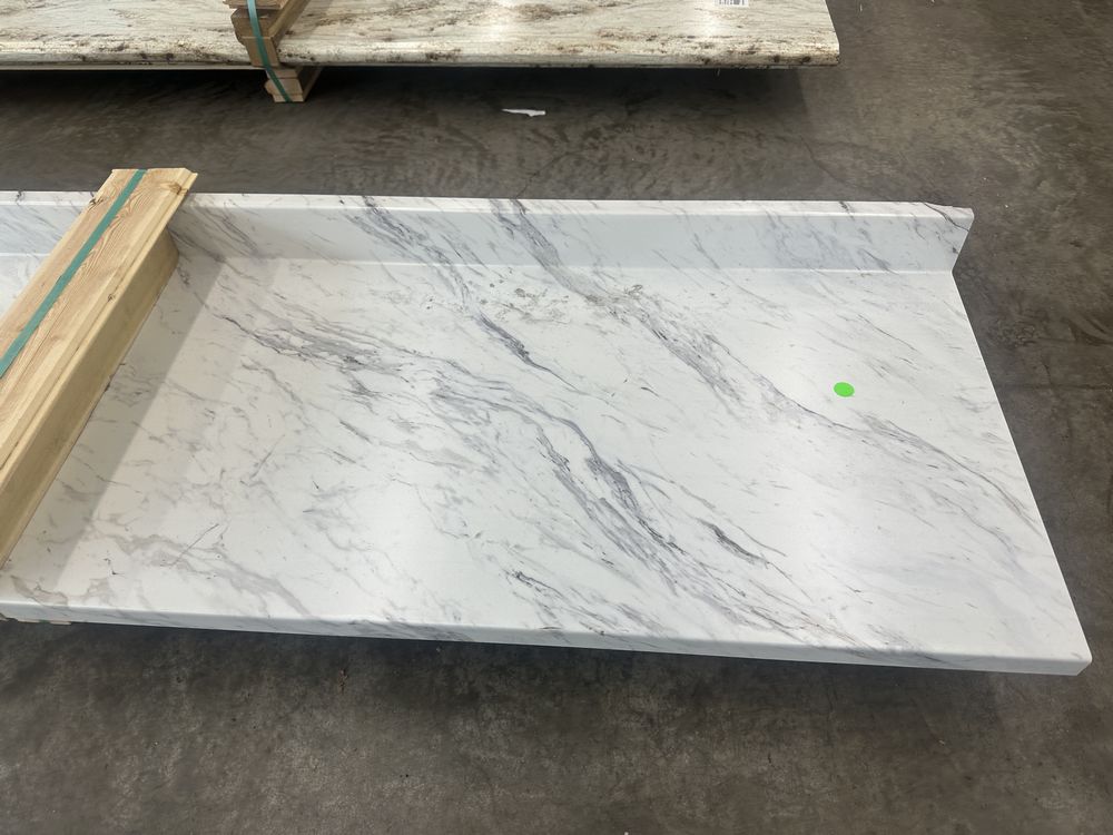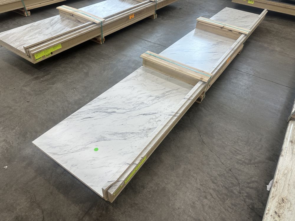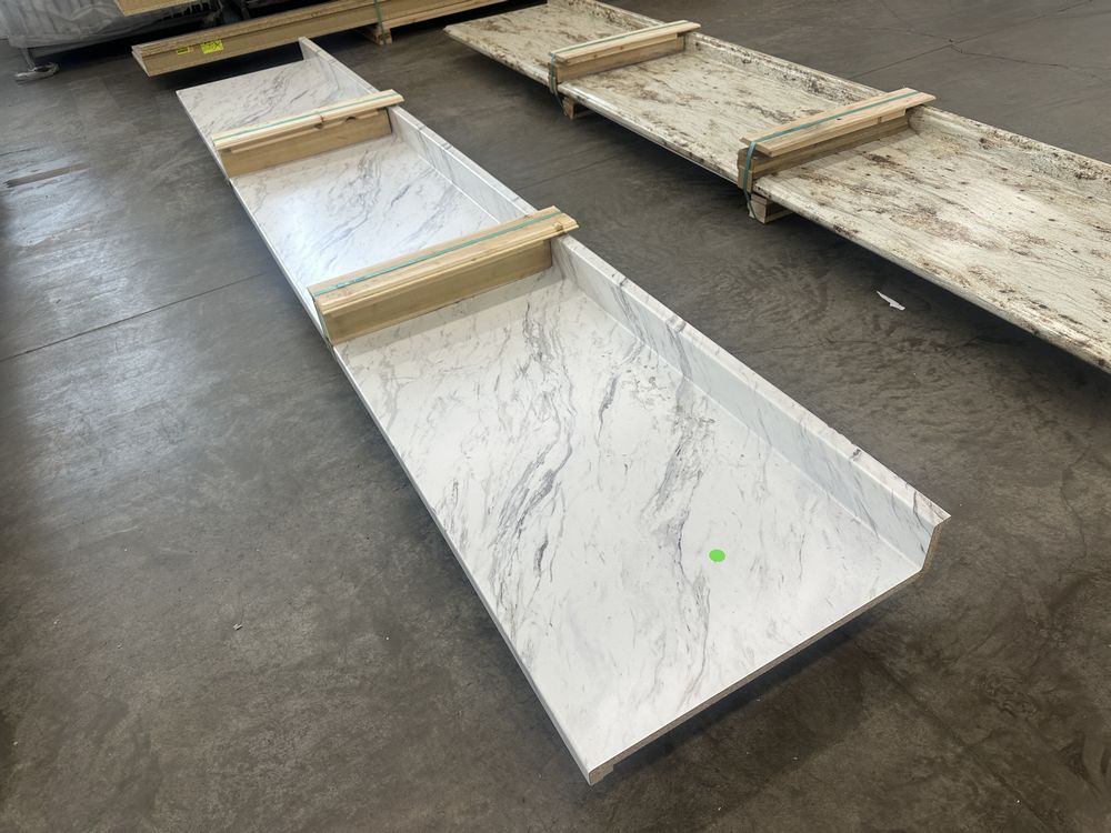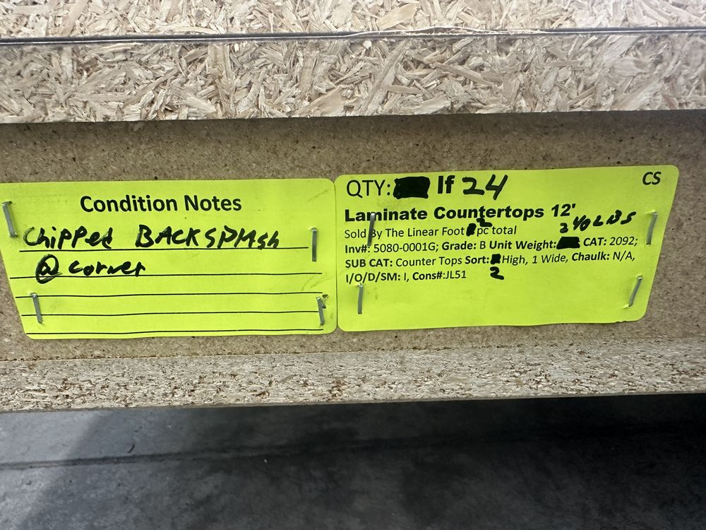 Laminate Countertops 12'. Sold By The Linear Foot, 2 Pieces Total, Grade: B *Chipped Backsplash On Corner, See Photos*. Weight: 240. Sold by: Linear Foot . Sold as: Price X Quantity. Inventory #: 5080-0001G
