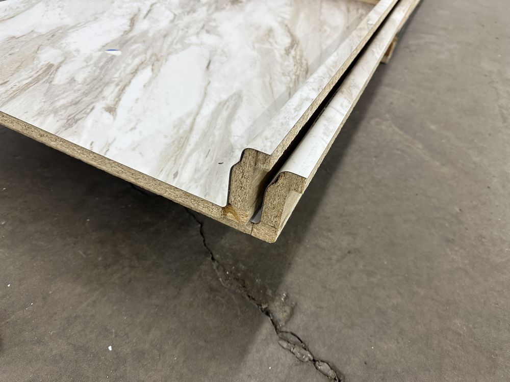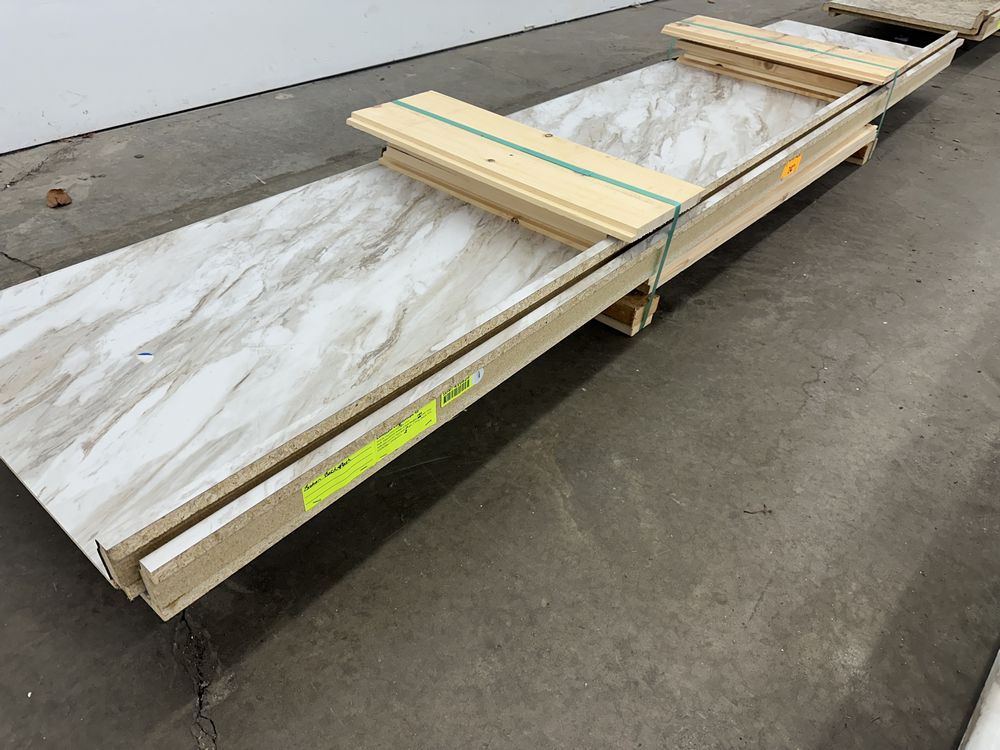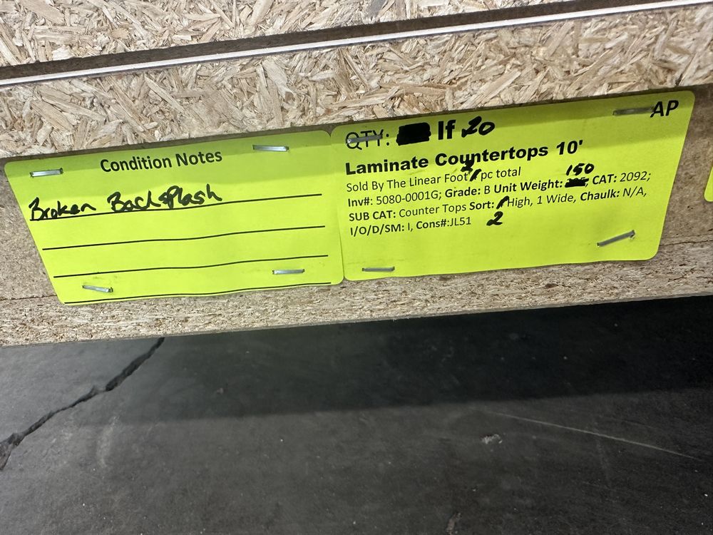 Laminate Countertops 10'. Sold By The Linear Foot, 2pc Total, Grade: B *Broken Backsplash, Please See Photos*. Weight: 325. Sold by: Linear Foot. Sold as: Price X Quantity. Inventory #: 5080-0001G