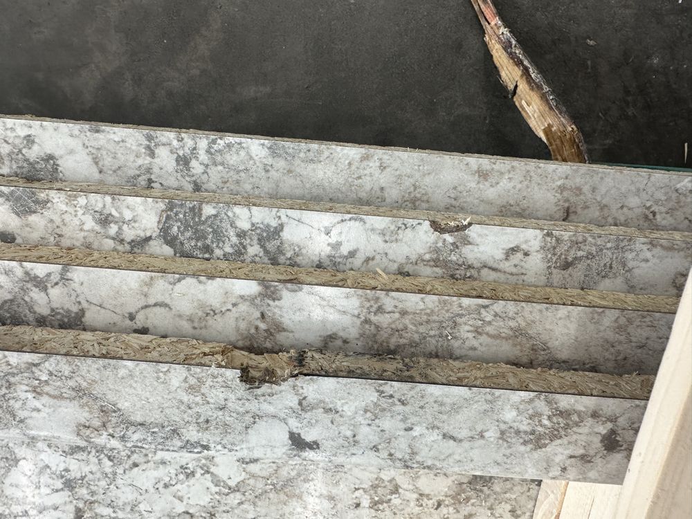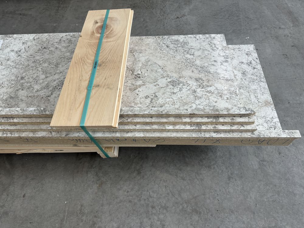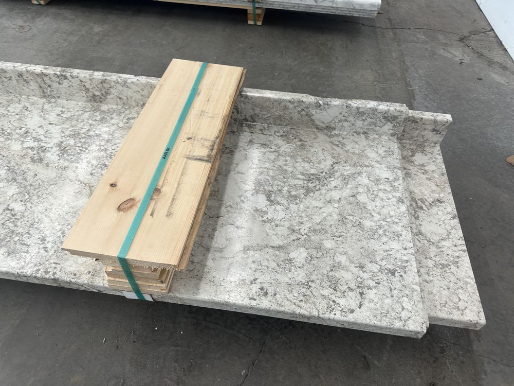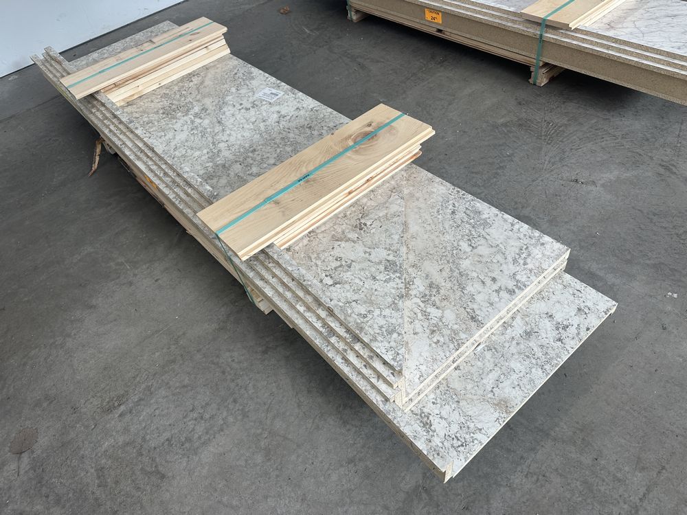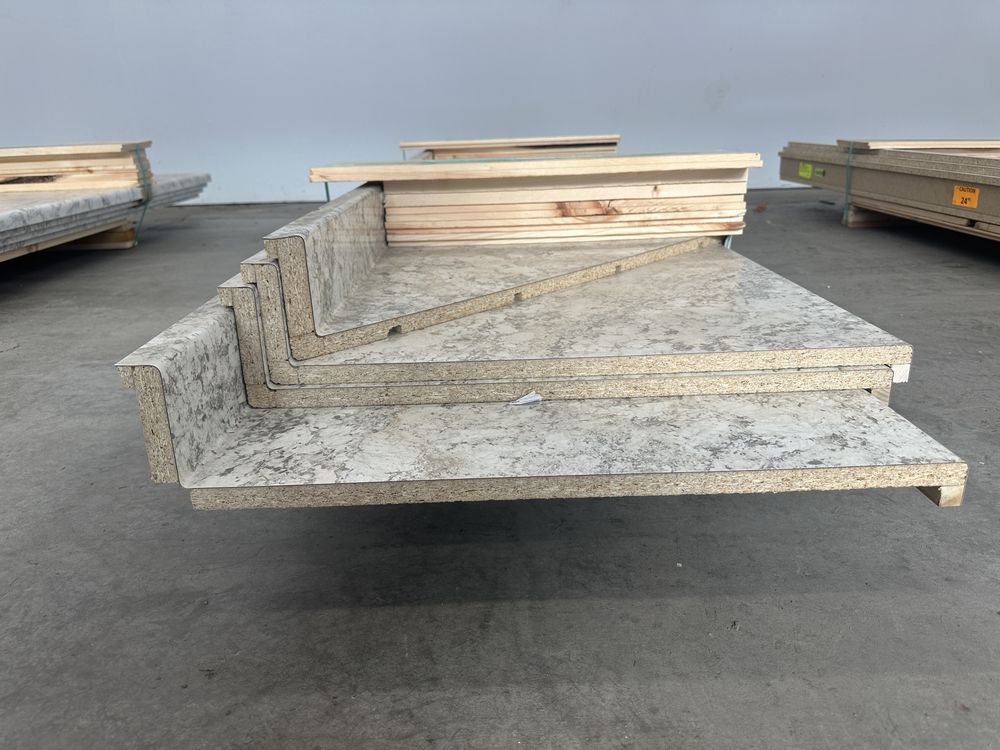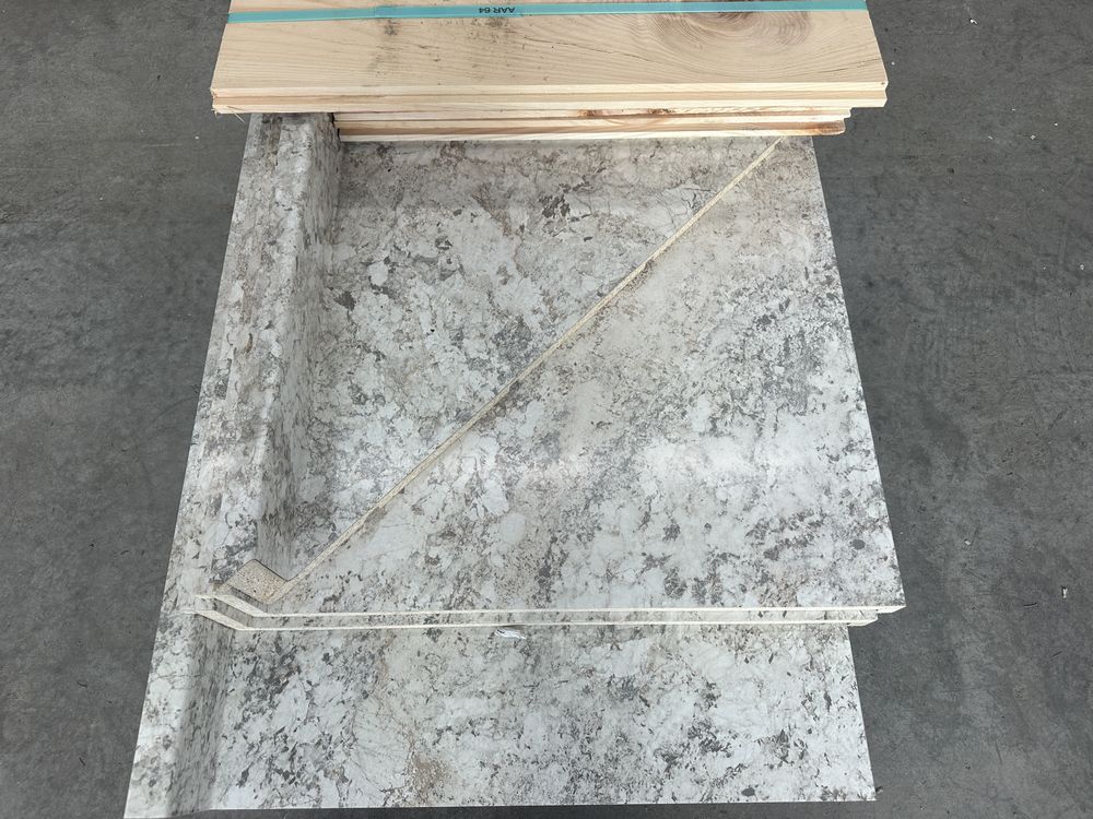 Laminate Countertops 8'. Sold By The Linear Foot, 4pc Total, Grade: B *1 Damaged Backsplash, 1 Damaged by water on face, Please See Photos*. Weight: 300. Sold by: Linear Foot. Sold as: Price X Quantity. Inventory #: 5080-0001G