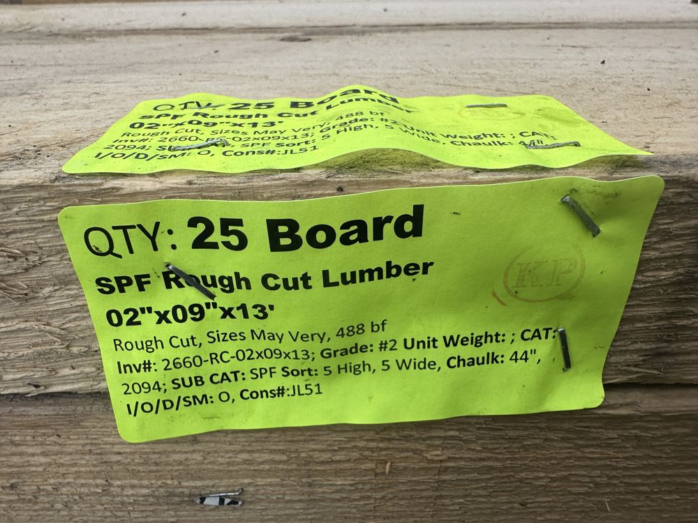 SPF Rough Cut Lumber 2"x9"x13'. Rough Cut, Sizes May Vary, 488 Board Foot, Grade: #2 . Weight: x. Sold by: Board. Sold as: Price X Quantity. Inventory #: 2660-RC-02x09x13
