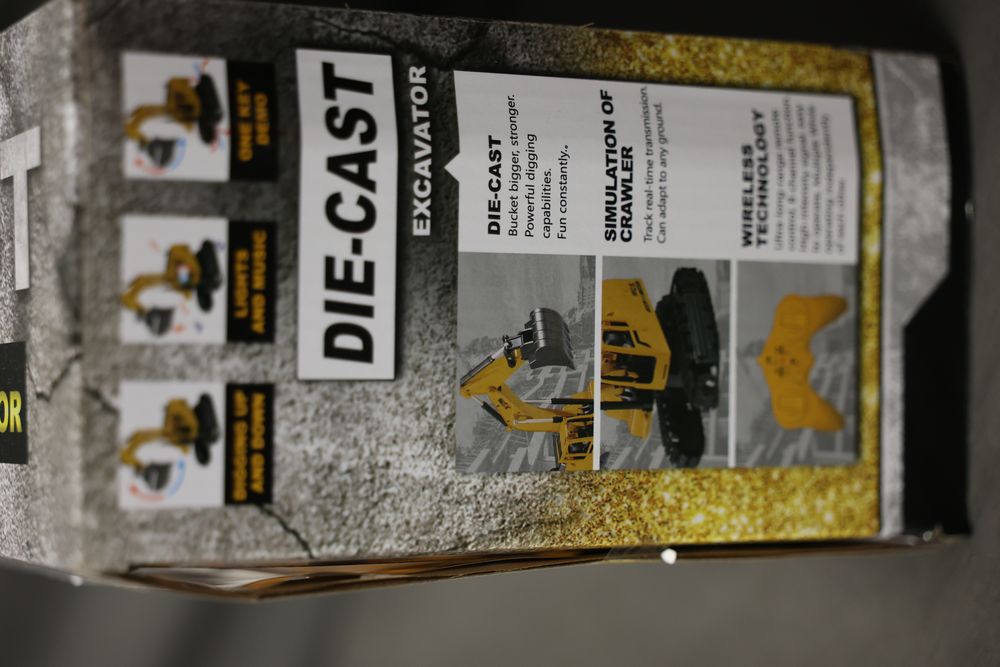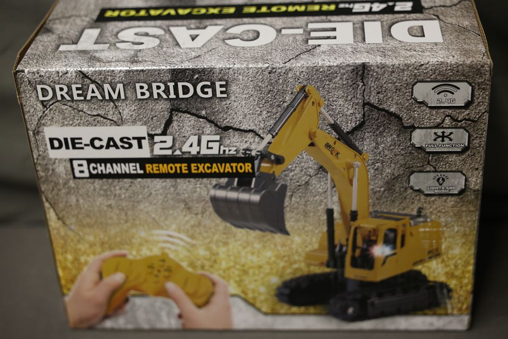 Die-Cast remote excavator operates on a 2.4GHz frequency and features 8-channel functionality for versatile control. Designed in a 1:24 scale, it includes simulation of crawler movement, die-cast components, and wireless technology.