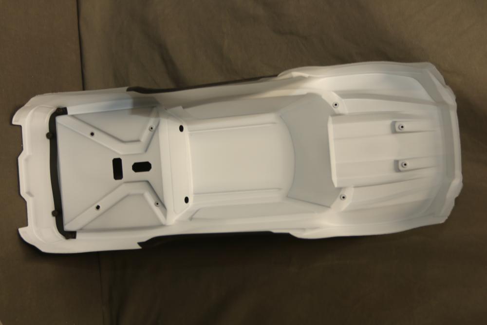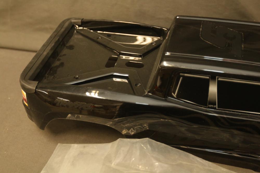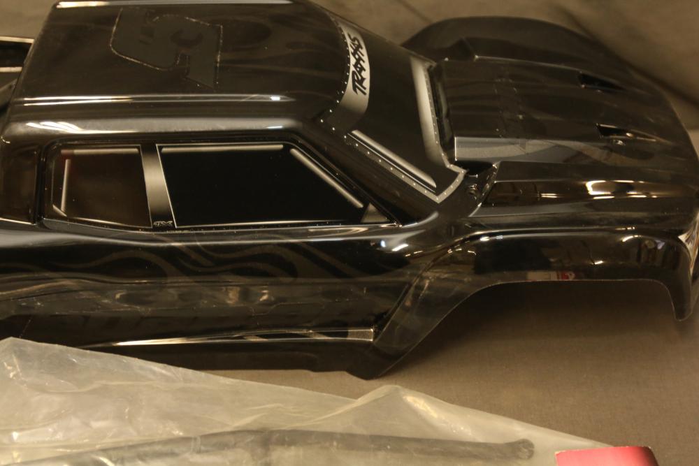 Traxxas R/C car Snap-On shell with ghost flame graphics, also incl Traxxas shell mount.