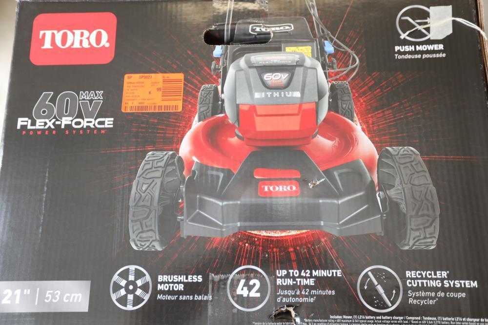 Items include Toro 60V Max Flex-Force Lithium Self-Propelled Lawn Mower; WEN 8-inch electric pole saw; Toro Power Without Compromise 60V rear-wheel drive self-propelled lawn mower; WEN 16-inch dethatcher & scarifier; WEN Model 4015 14-inch electric chain saw; Toro Flex-Force Power System 60V Max Lithium-Ion Batteries; Toro 60V Max Trimmer/Blower Combo Kit; Toro 60V lithium-ion battery-powered lawn mower; Toro 60V Max cordless string trimmer; Toro 21-inch Recycler Push Lawn Mower; Toro 60V Max Cordless Pole Saw & much more. Items are located in Pleasant Valley, NY.
