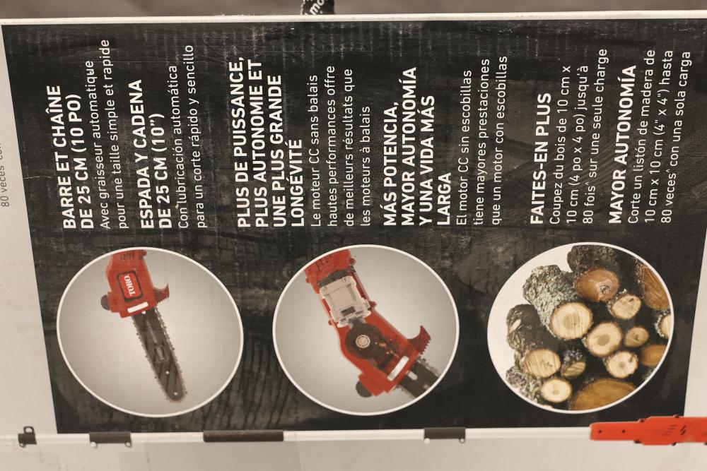 Toro 60V Max Cordless Pole Saw featuring a 10-inch bar and chain for efficient cutting. Equipped with a brushless motor for increased power and longer runtime, it can achieve up to 80 cuts per charge. The pole saw offers an 8-foot reach, ergonomic handle, and standard bar cover. Includes an 80ml oil reservoir and a 60V 2.0Ah battery with a charge time of 100 minutes. New in box.