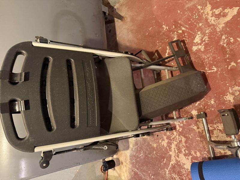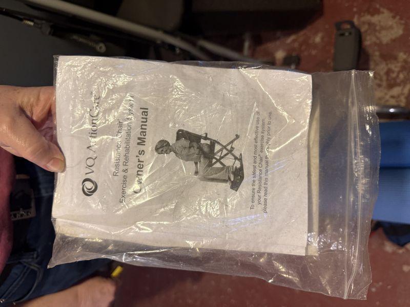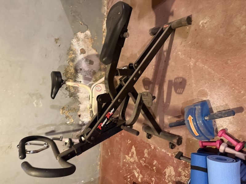 Exercise Equipment. Power Rider exercise equipment; BH exercise bike; VQ Action Care rehab machine w/ manual; desk pedals; dumbbells (9); leg weights; ab trainer; grip strength trainer; resistance bands; yoga mats (2). Loc in basement w/ hatchway exit.
