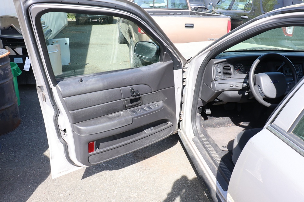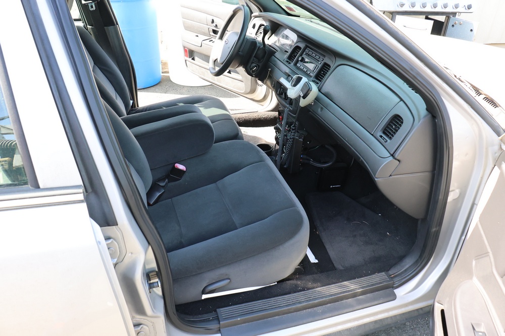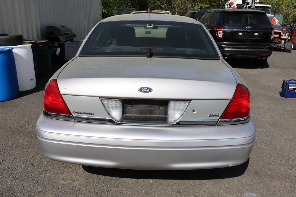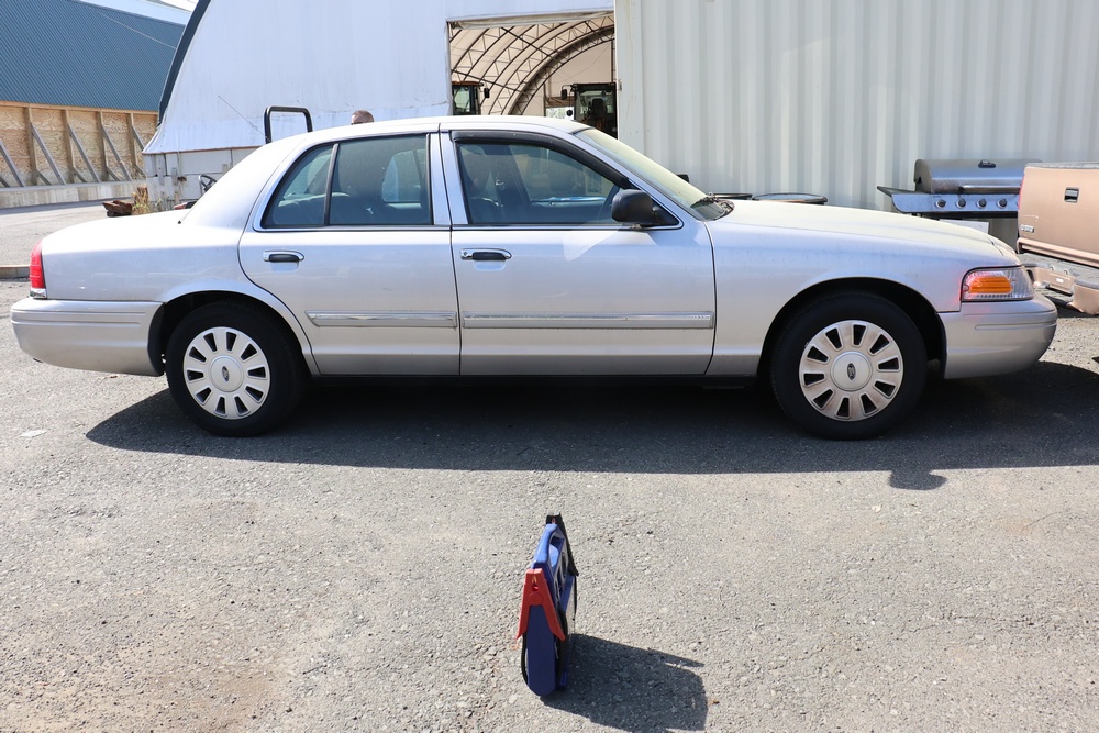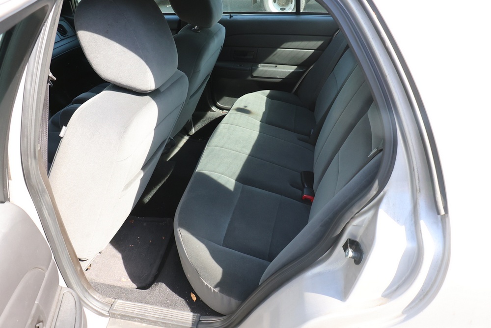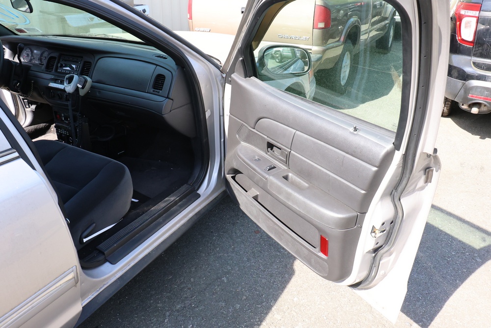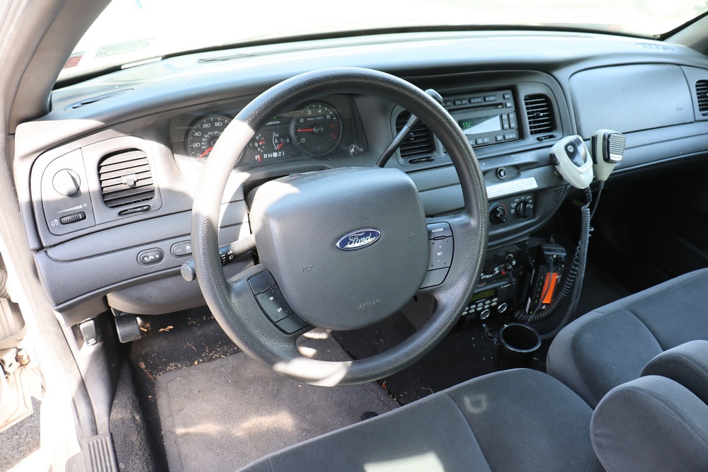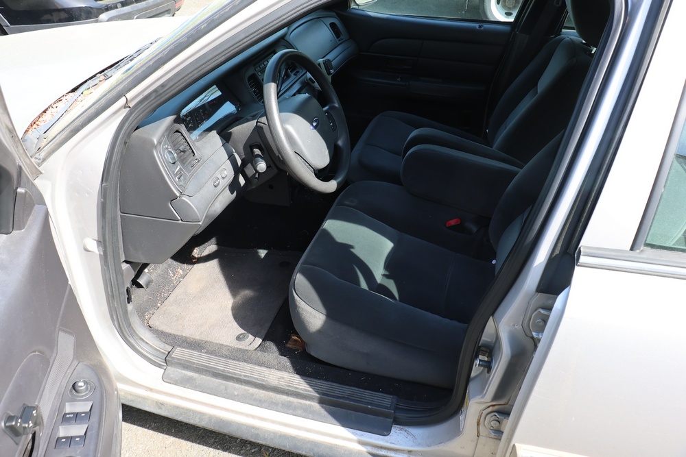 2011 Ford Crown Victoria Police Interceptor. VIN: 2FABP7BV8BX160367. Odometer reading: 34,442 miles. Engine: 4.6L V8, automatic transmission. Exterior: Silver with steel wheels. Interior: Cloth front seats, police equipment including console-mounted radio controls and microphone, manual climate controls, factory AM/FM radio with CD player. Town radio and equipment will be removed prior to pickup. Seller reports: Runs and drives, title and key available.