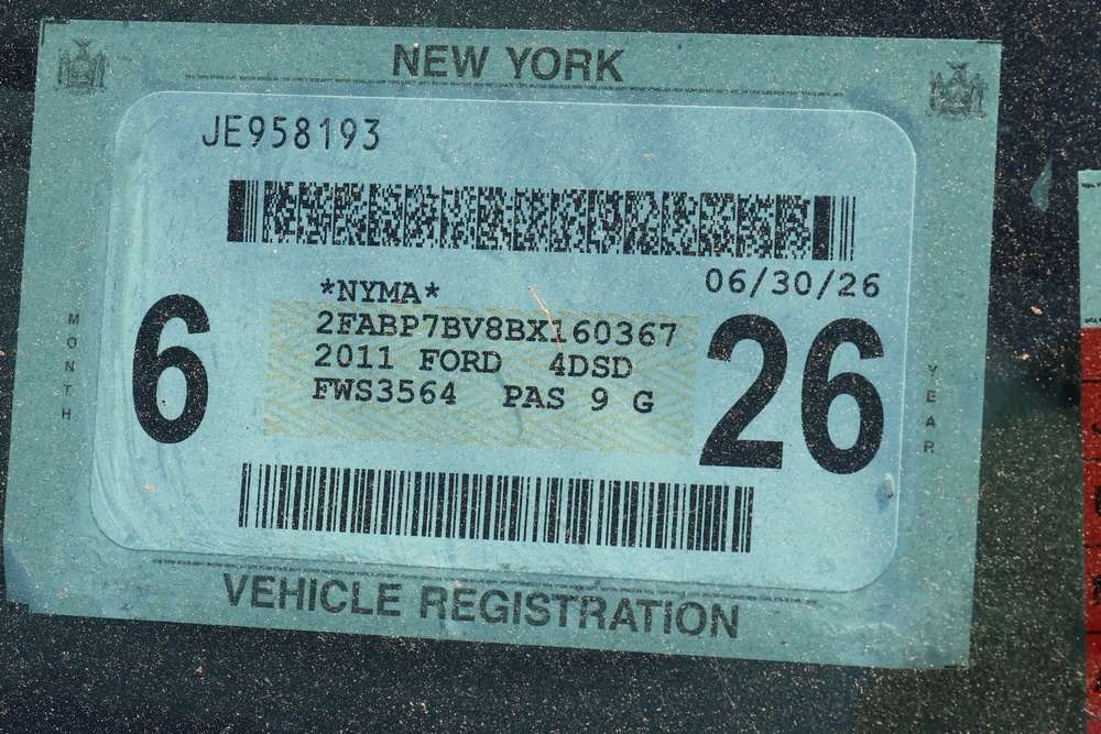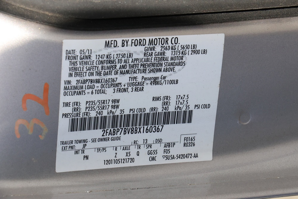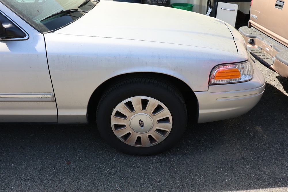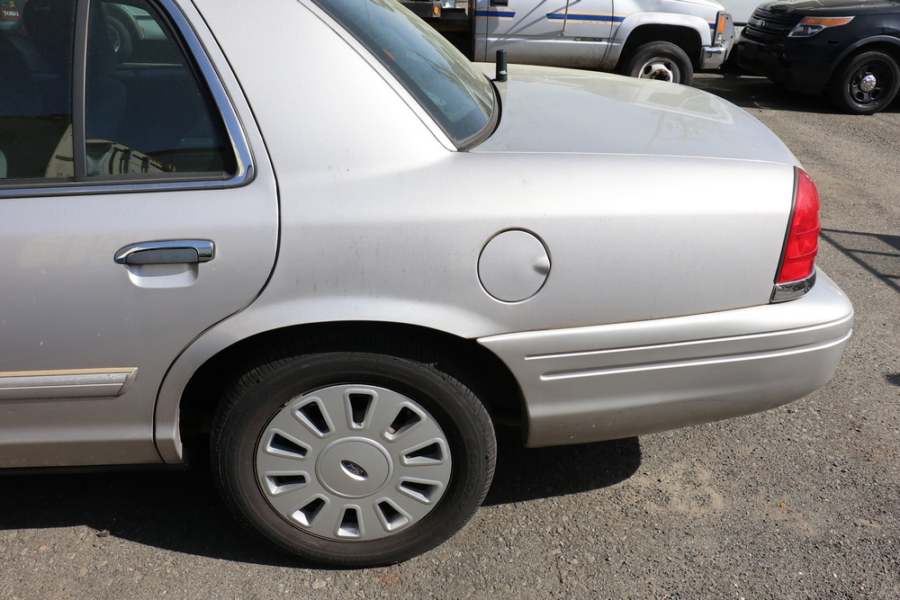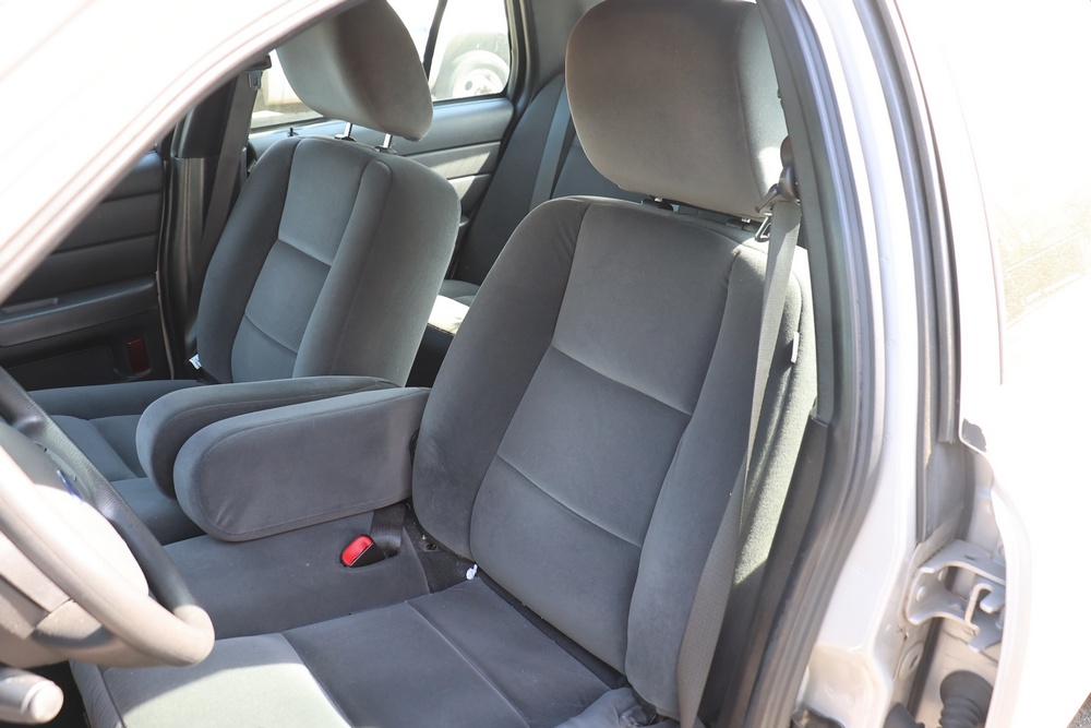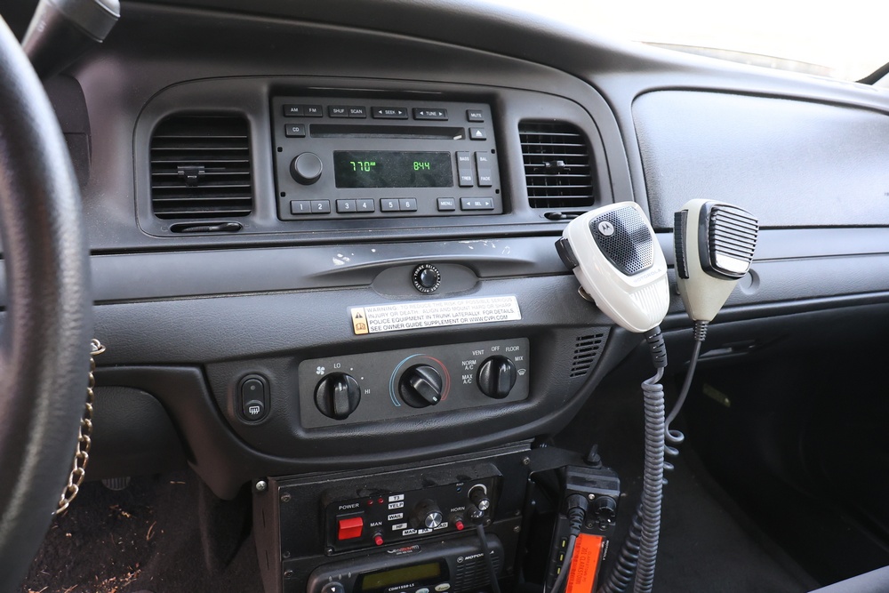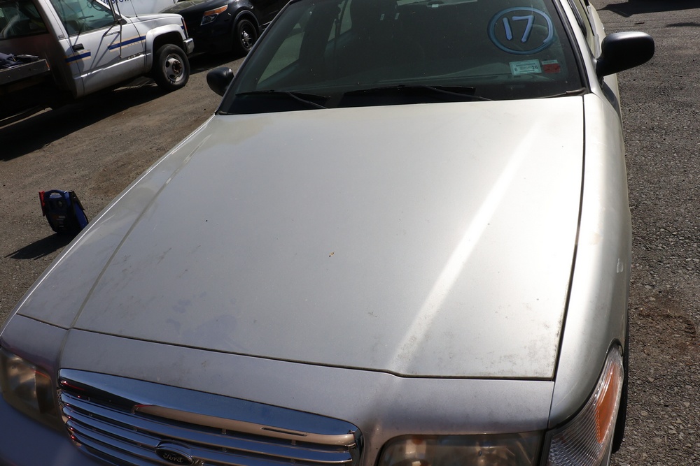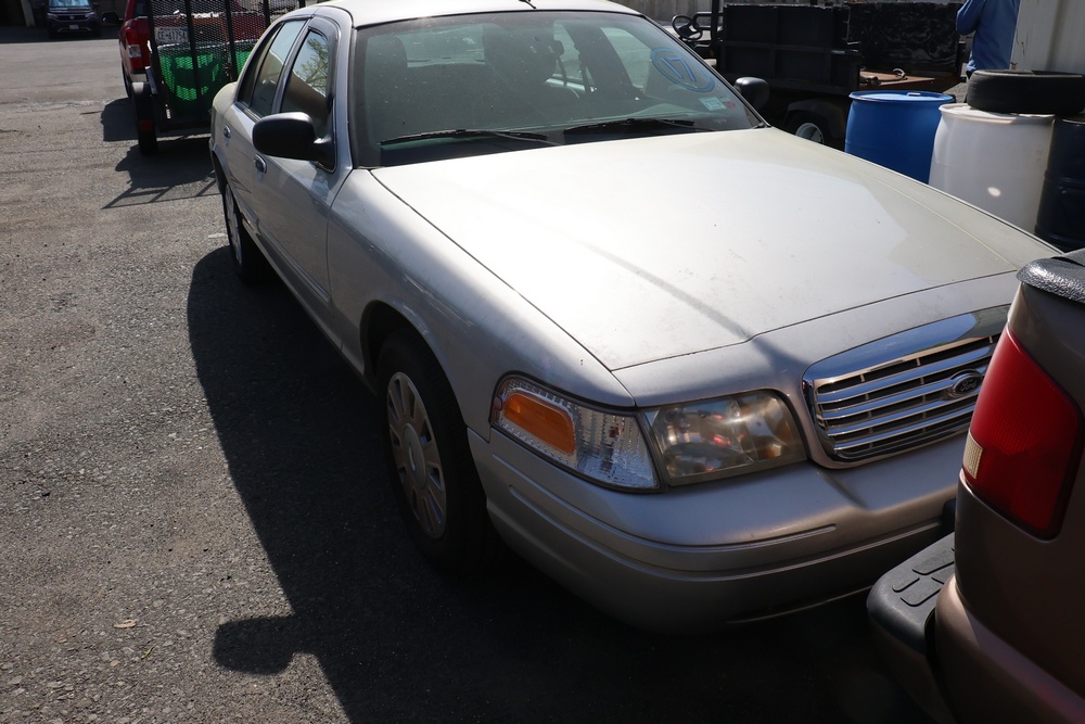 2011 Ford Crown Victoria Police Interceptor. VIN: 2FABP7BV8BX160367. Odometer reading: 34,442 miles. Engine: 4.6L V8, automatic transmission. Exterior: Silver with steel wheels. Interior: Cloth front seats, police equipment including console-mounted radio controls and microphone, manual climate controls, factory AM/FM radio with CD player. Town radio and equipment will be removed prior to pickup. Seller reports: Runs and drives, title and key available.