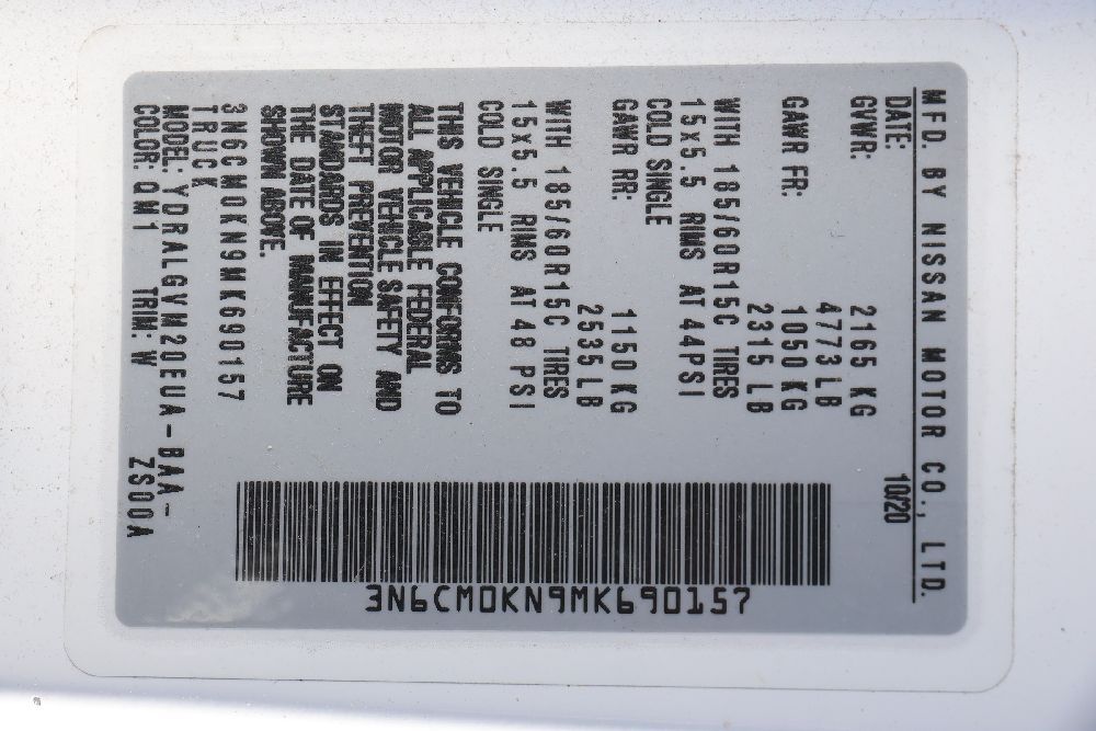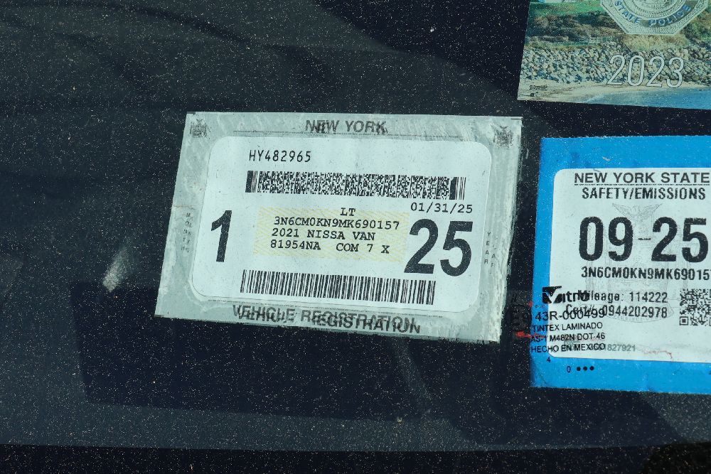 2021 Nissan NV200, VIN: 3N6CM0KN9MK690157, 2.0L L4 DOHC 16V engine, odometer reading: 118012. Runs and drives. Keys, title and bill of sale available. Rear sliding doors stick when opening/closing. Dead battery at time of photography.