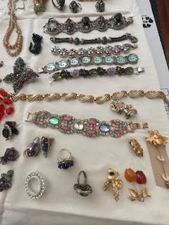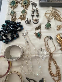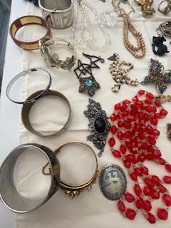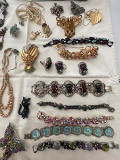 Costume Jewelry. Incl: necklaces; earrings; bracelets; rings; stick pin; brooches. Approx 40 pcs. See photos for details.