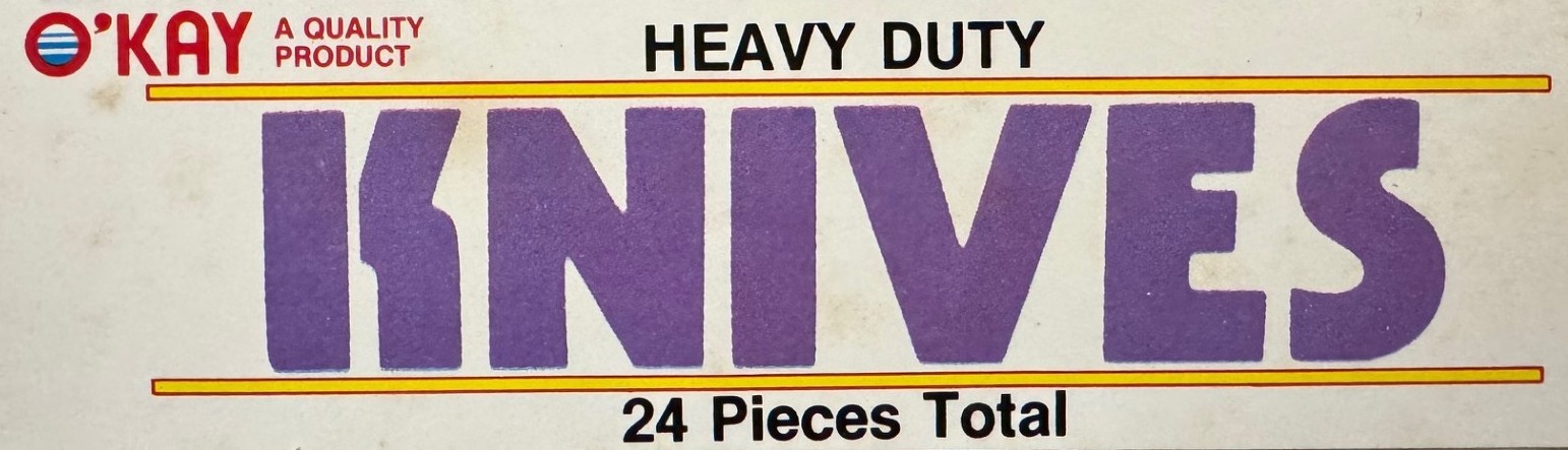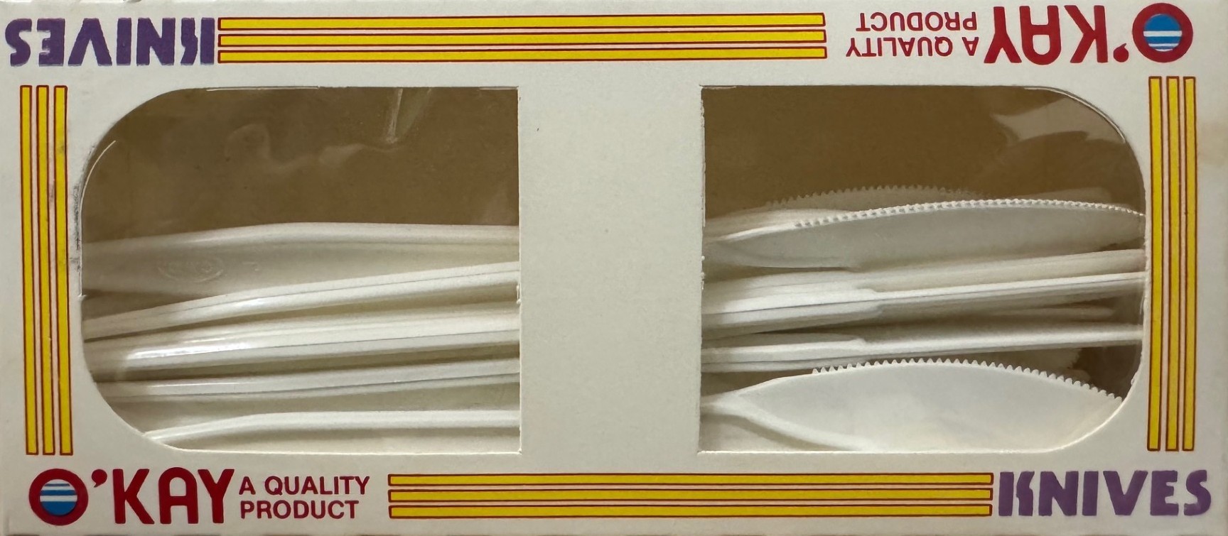 6 Packages O'Kay Heavy Duty Plastic Knives (24 per Box) 144 Pieces Total - Made in USA.