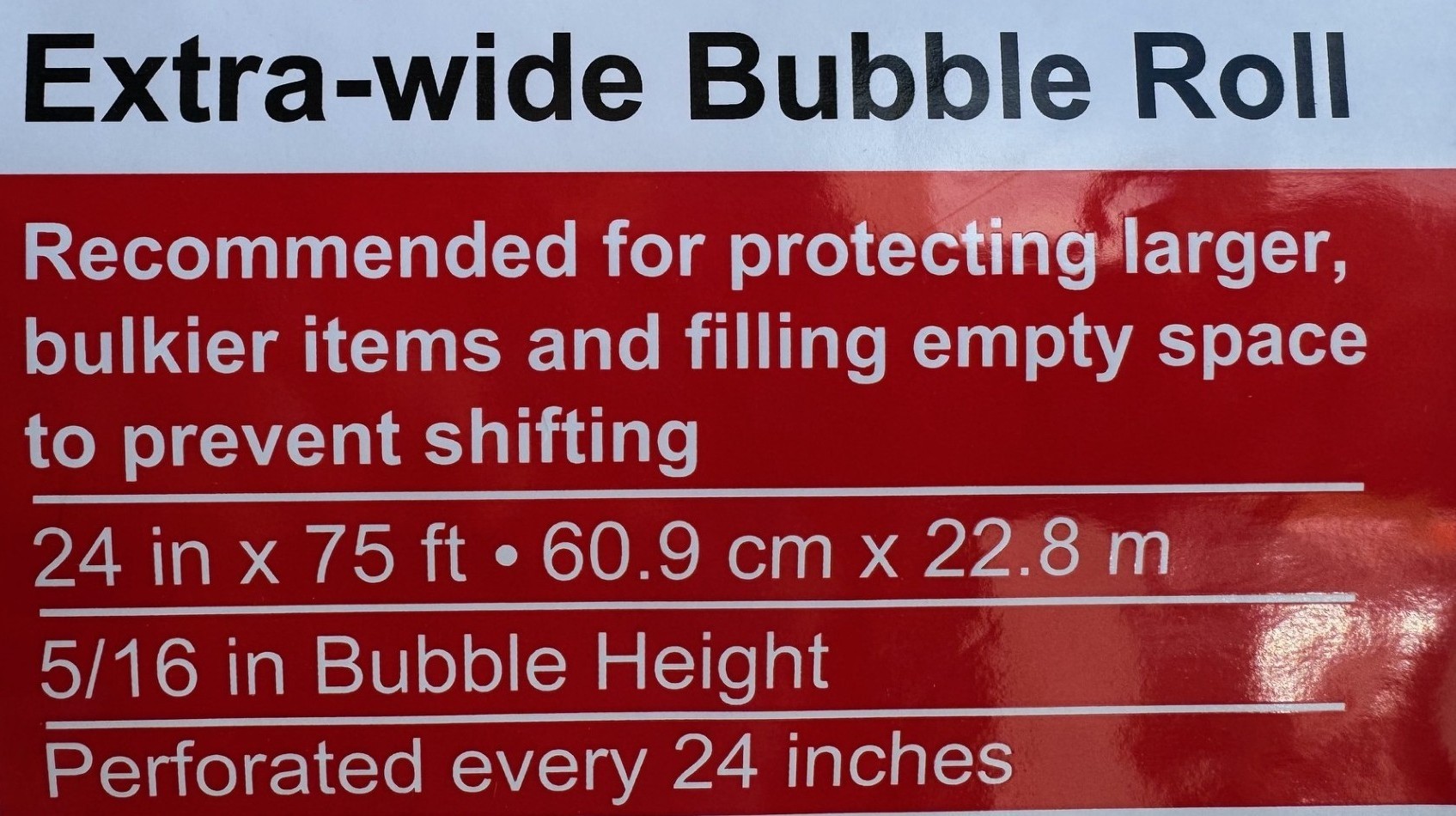 150-Square Foot Roll Medium-Size Bubblewrap - 5/16-inch Bubble Height; 75-Feet Long x 24-inches Wide - Perforated every 12 -inches.