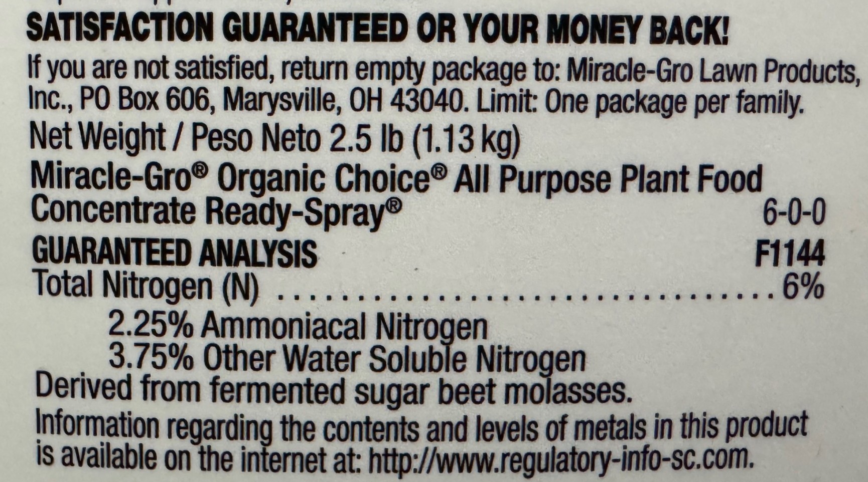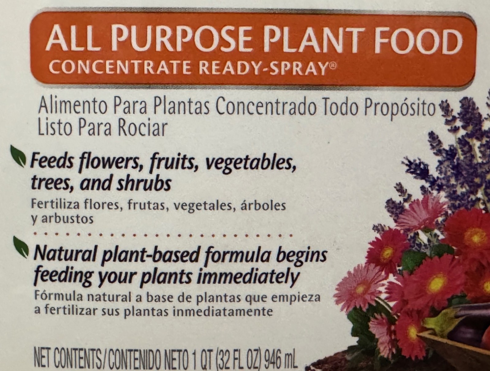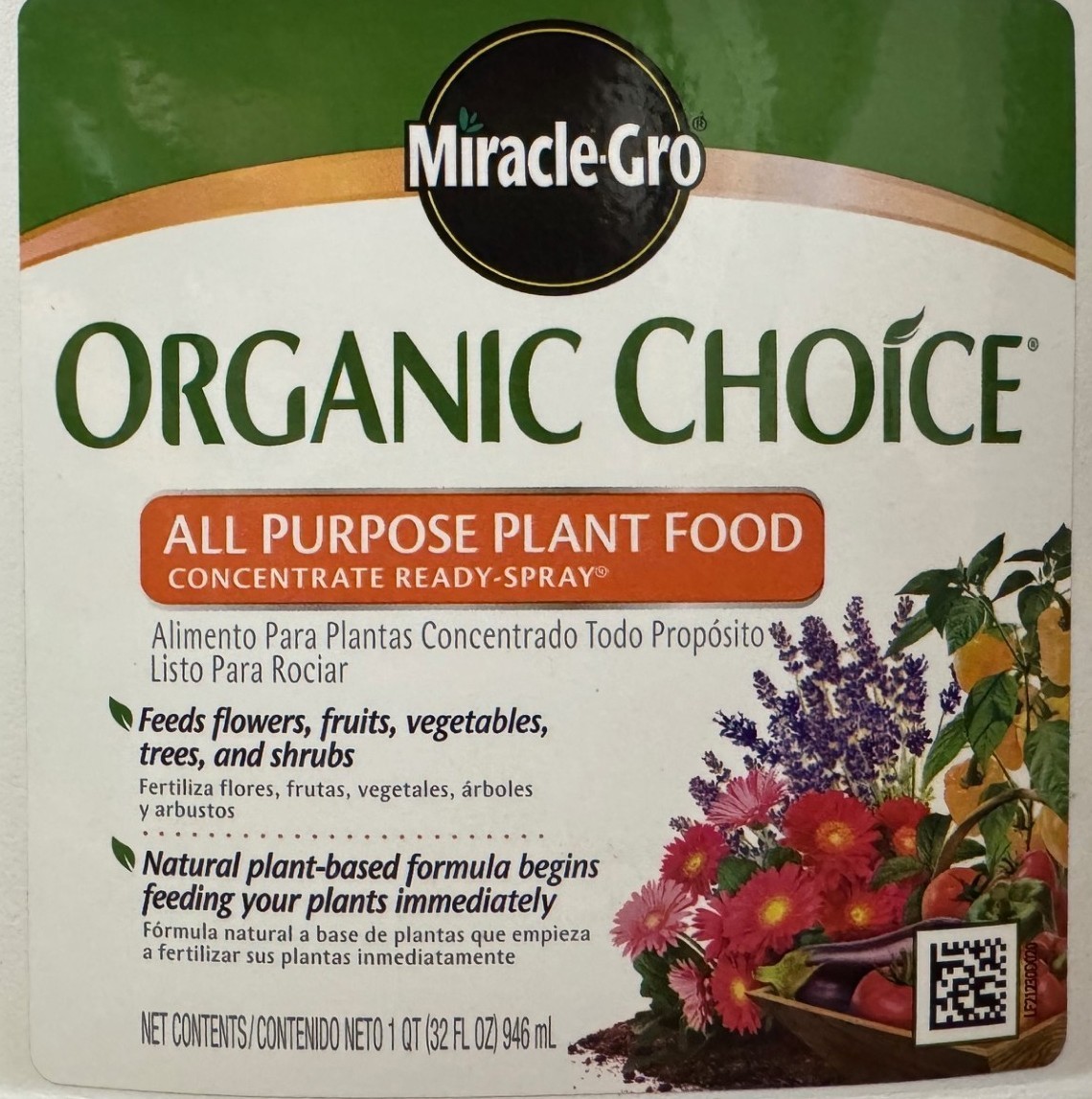 Miracle Gro Organic Choice All Purpose Plant Food Concentrate Hose-End Spray - 32-ounce Bottle. Pickup only.