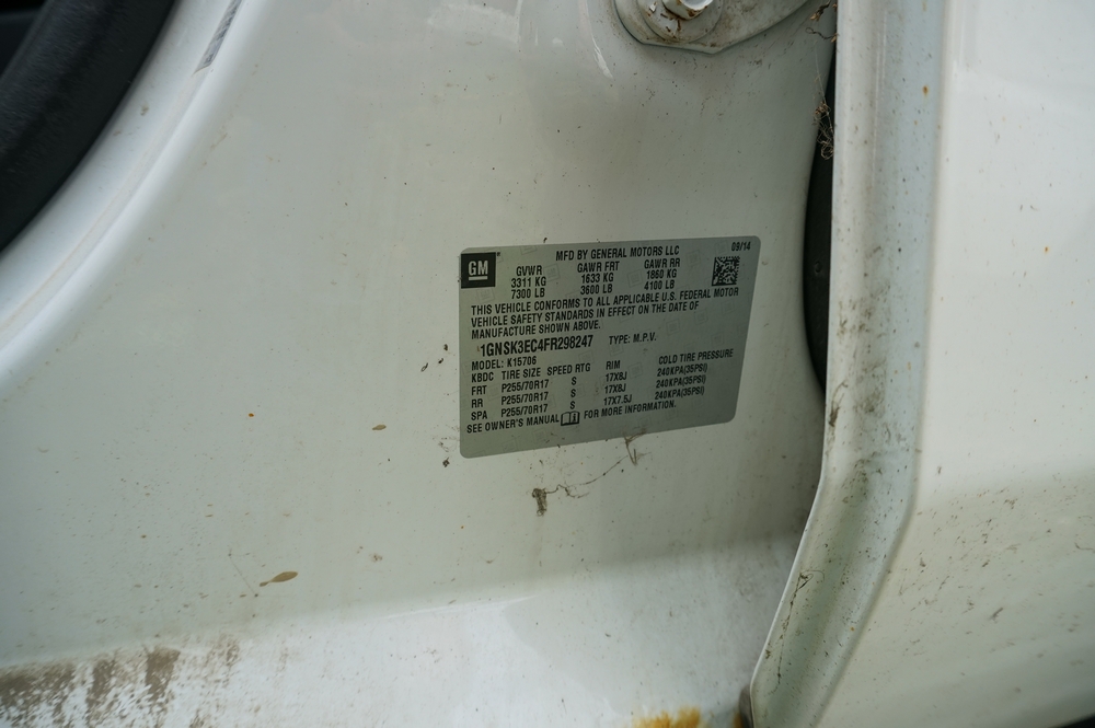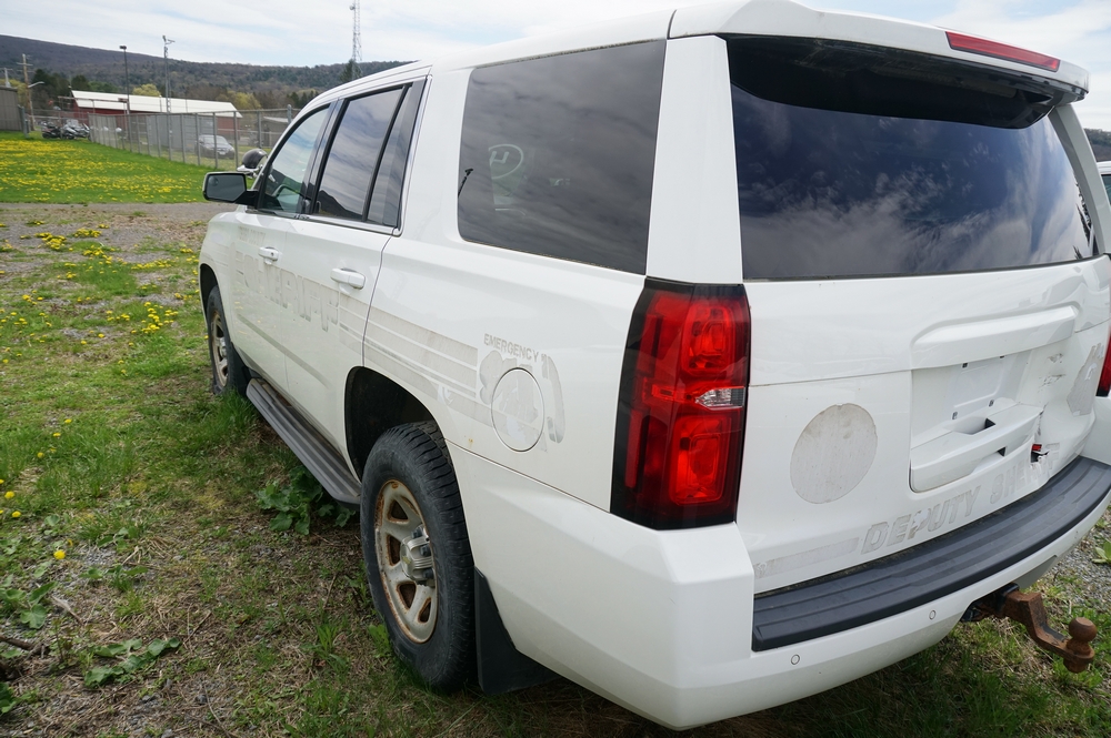 2015 Chevrolet Tahoe. Police Package Vehicle. VIN: 1GNSK3EC4FR298247. Odometer Reads: 63,001. Engine: 5.3L V8, E85. Transmission: Automatic, 4x4, 4WD. Center console has been removed. Rust. Seller States: Has not been in operation in a couple of years. Operation Unknown. Includes Title, Keys.