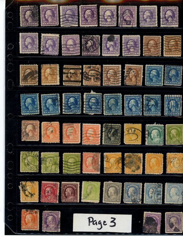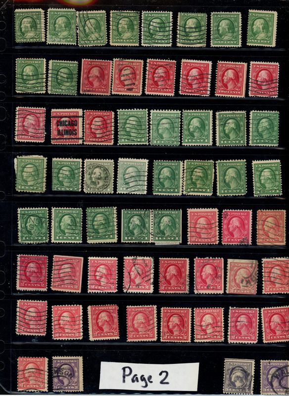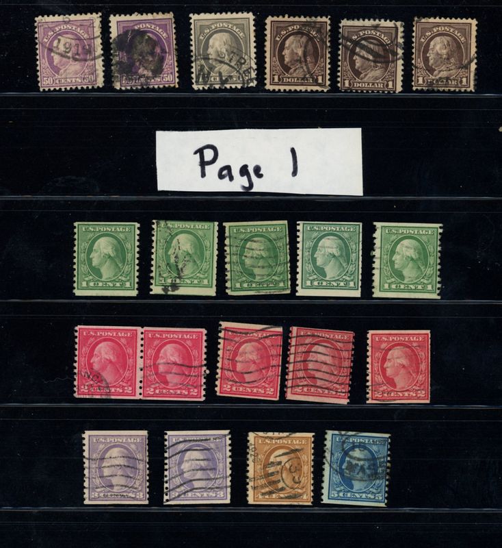 Washington Franklin lot including a collection of mint hinged stamps (except 2 with obvious cancels) on pages, and 3 stock book pages of unidentified stamps. Any stamp identifications made by the now-deceased collector were not verified by the auction company. Please note that to show the back of the stamps in the stock book pages, the whole page was flipped and not the individual stamps.