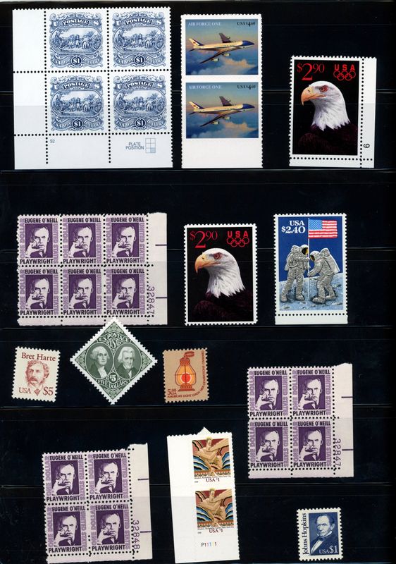 Accumulation of high denomination (at least $1) MNH United States Postage Stamps. The face value of the stamps is over $350. Many Priority Mail stamps in the mix.