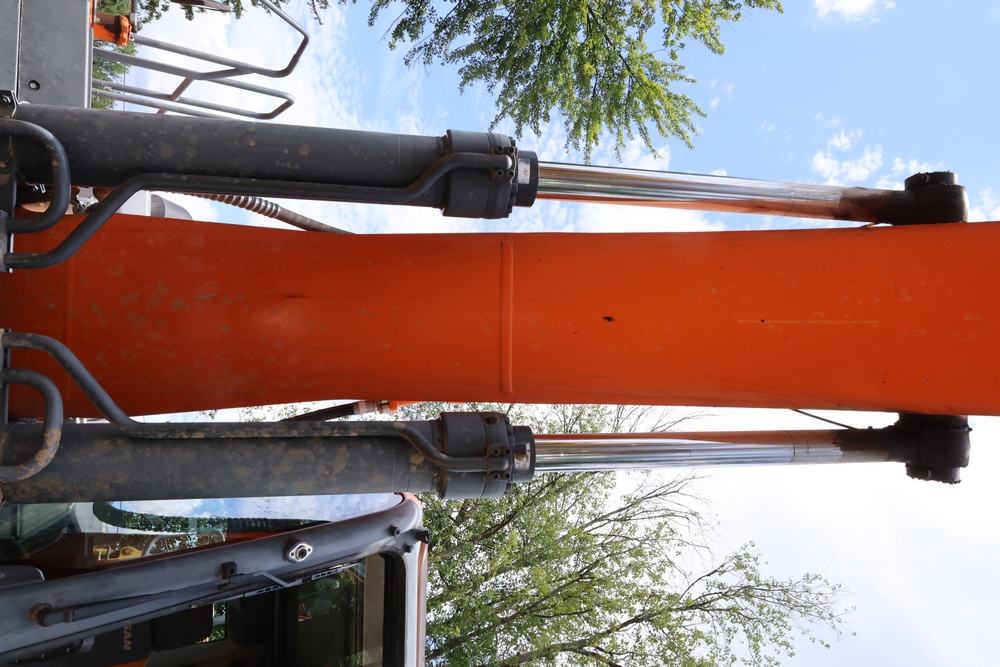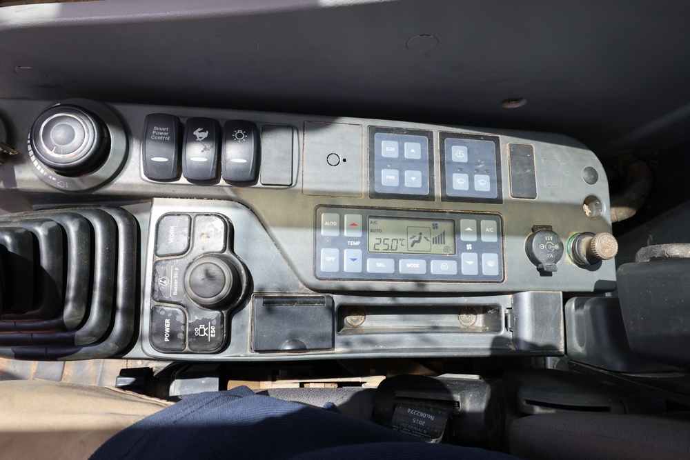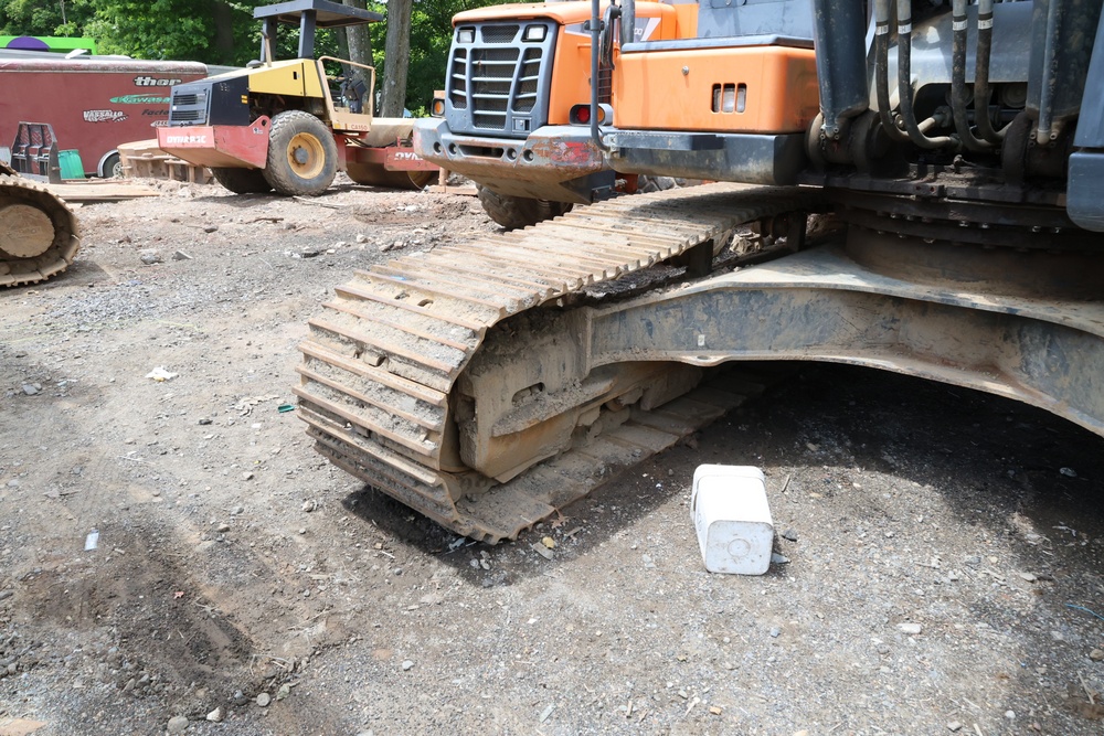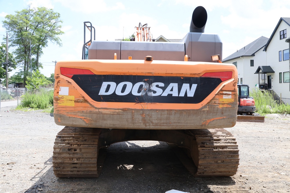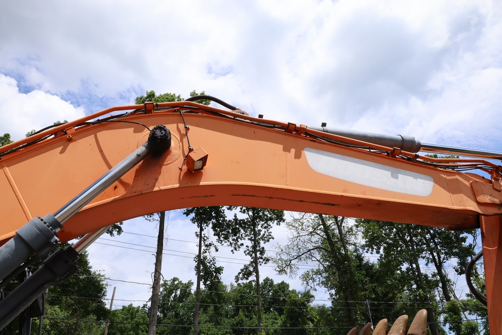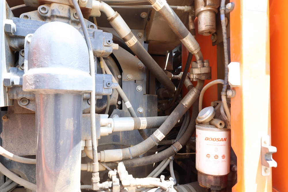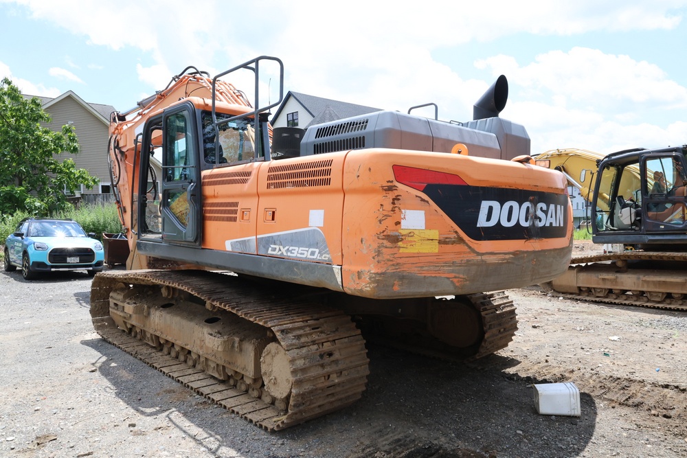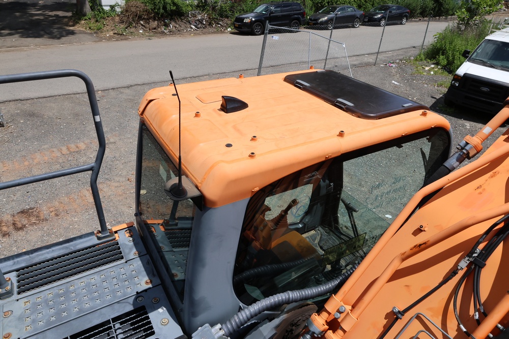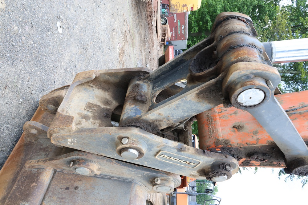 Doosan model DX350LC-5 excavator PIN: DQGCECBDKF1010179, aux hydraulic kit number 247747. With Scania engine type DC09 089A, heat, A/C, AM/FM radio, hour meter reading. Runs and operates. Key available.