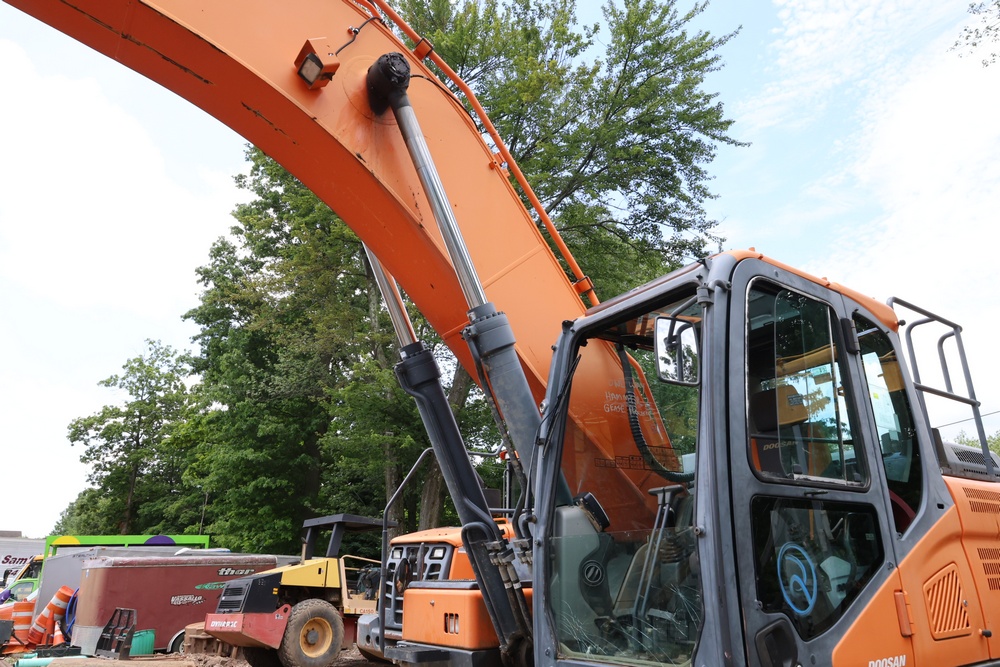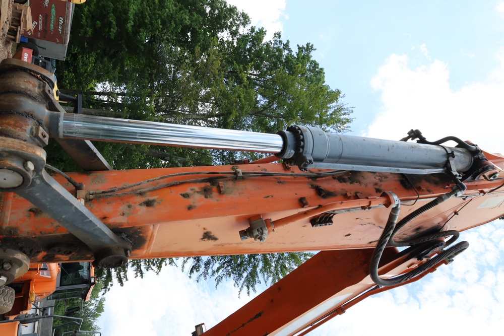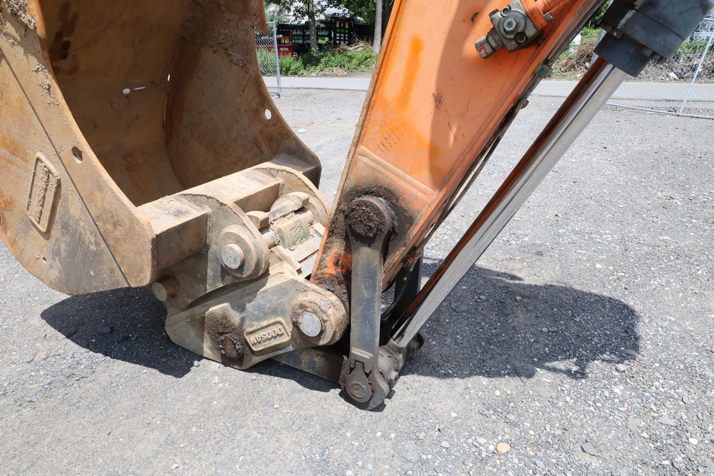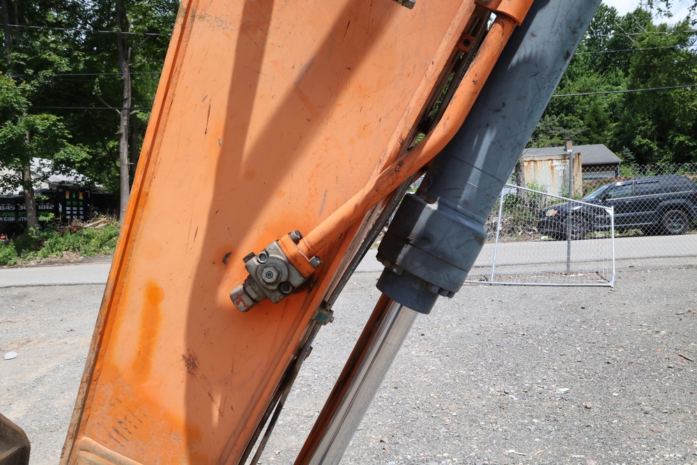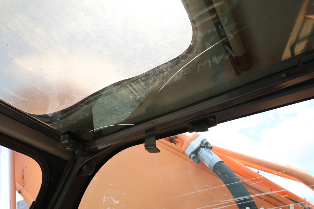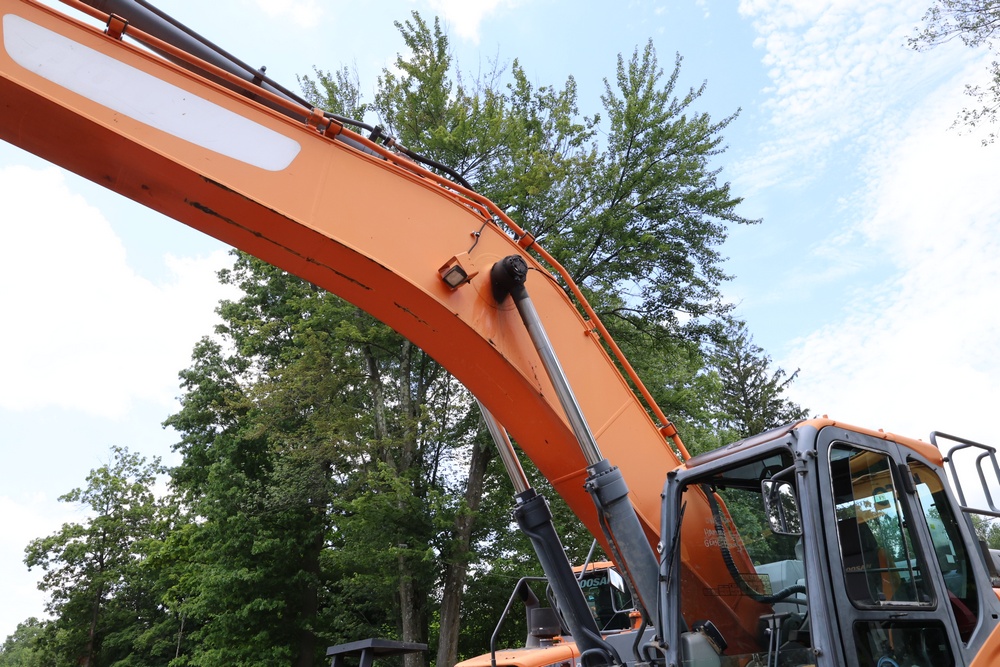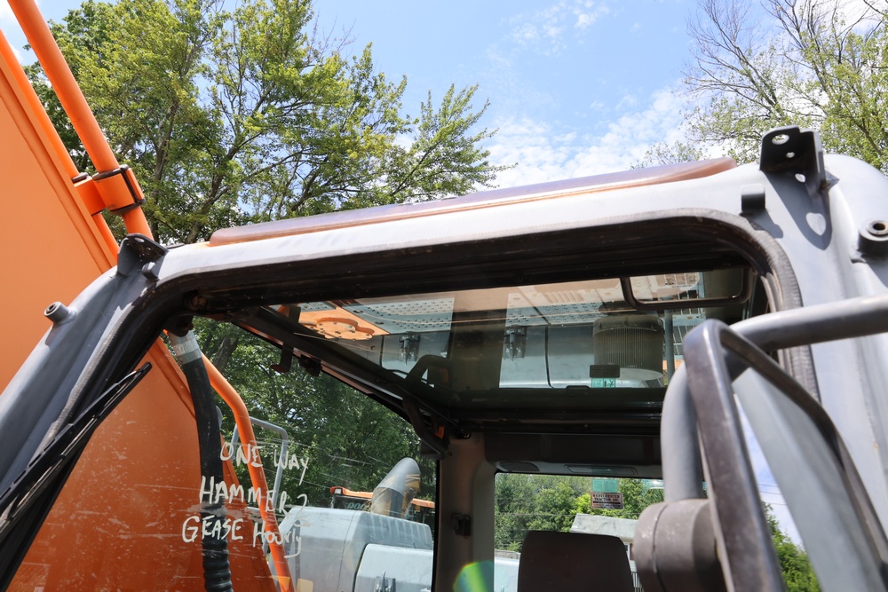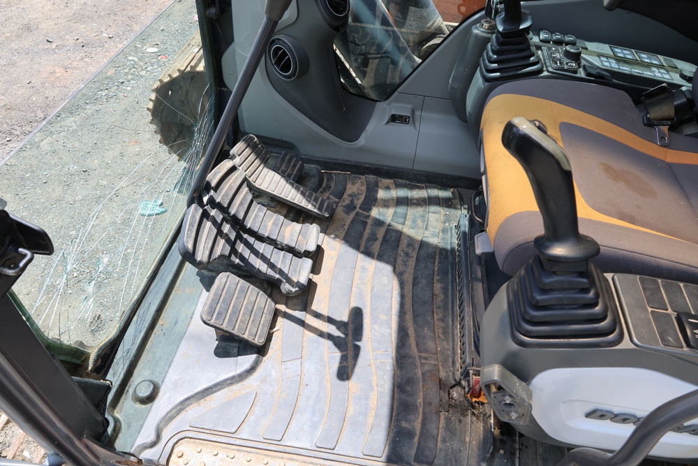Doosan model DX350LC-5 excavator PIN: DQGCECBDKF1010179, aux hydraulic kit number 247747. With Scania engine type DC09 089A, heat, A/C, AM/FM radio, hour meter reading. Runs and operates. Key available.