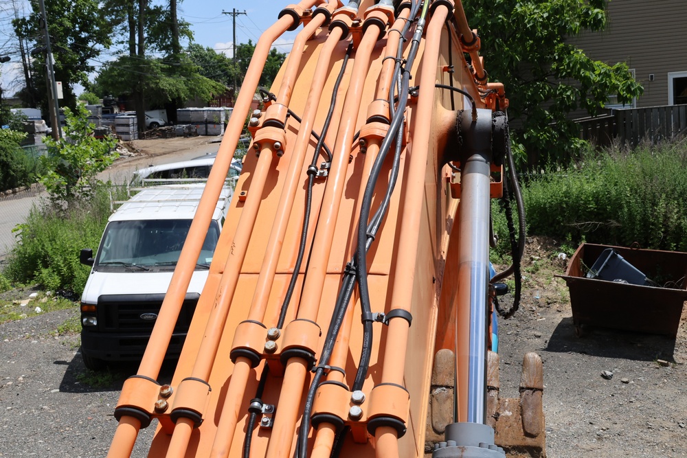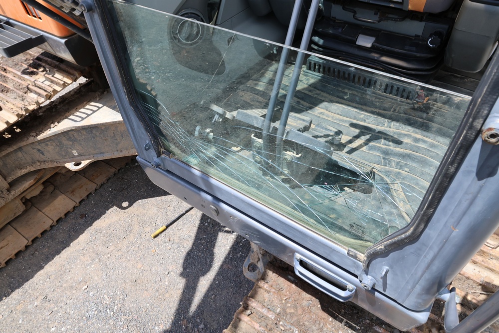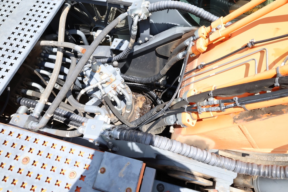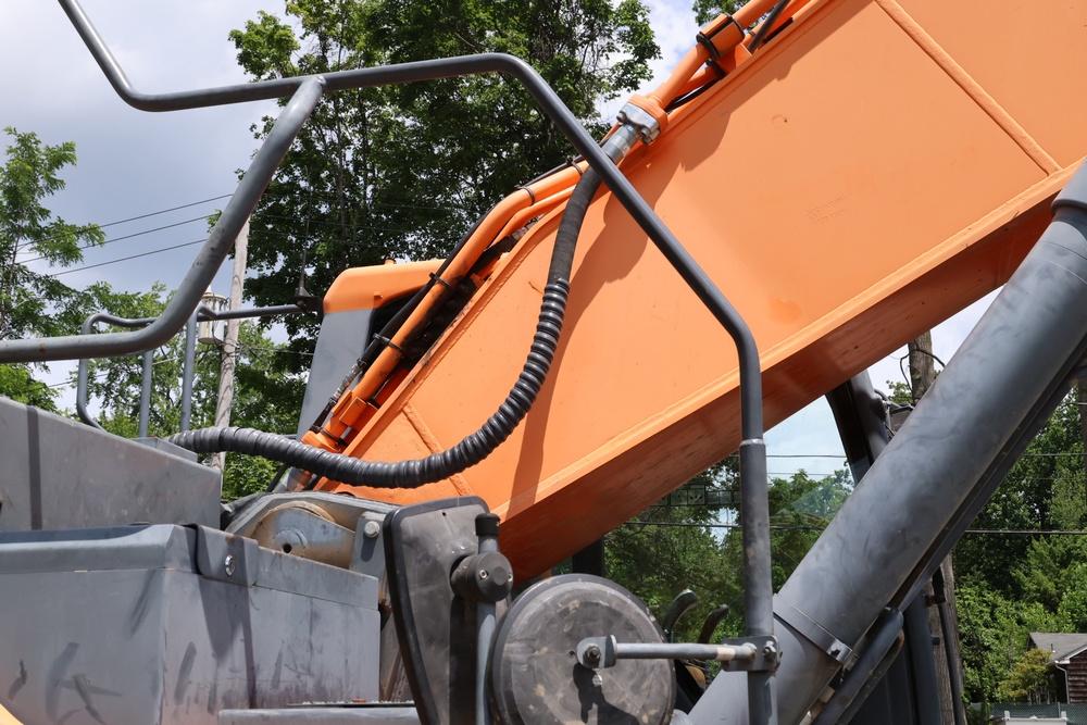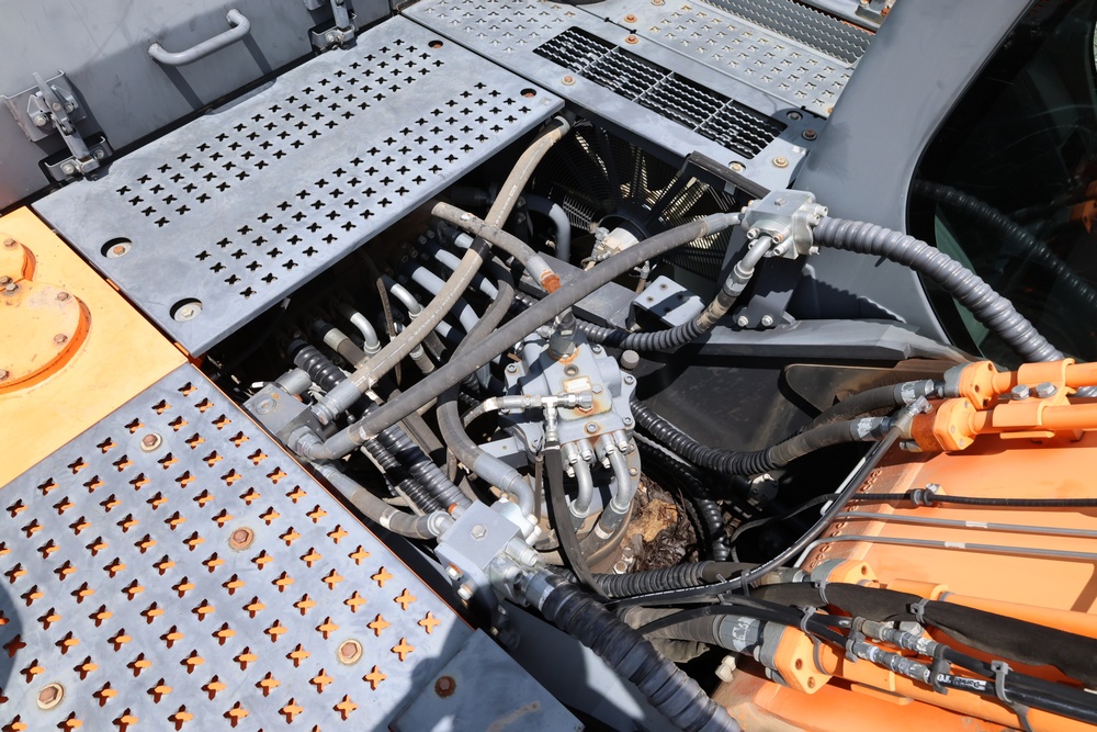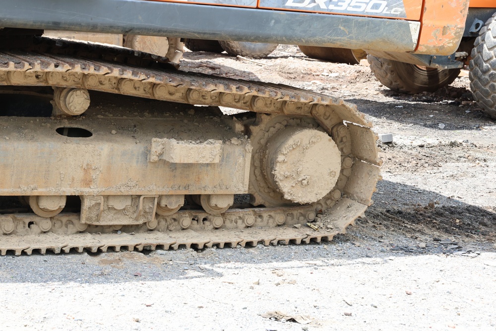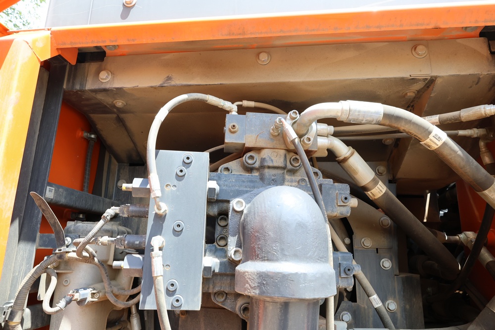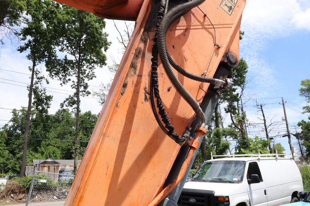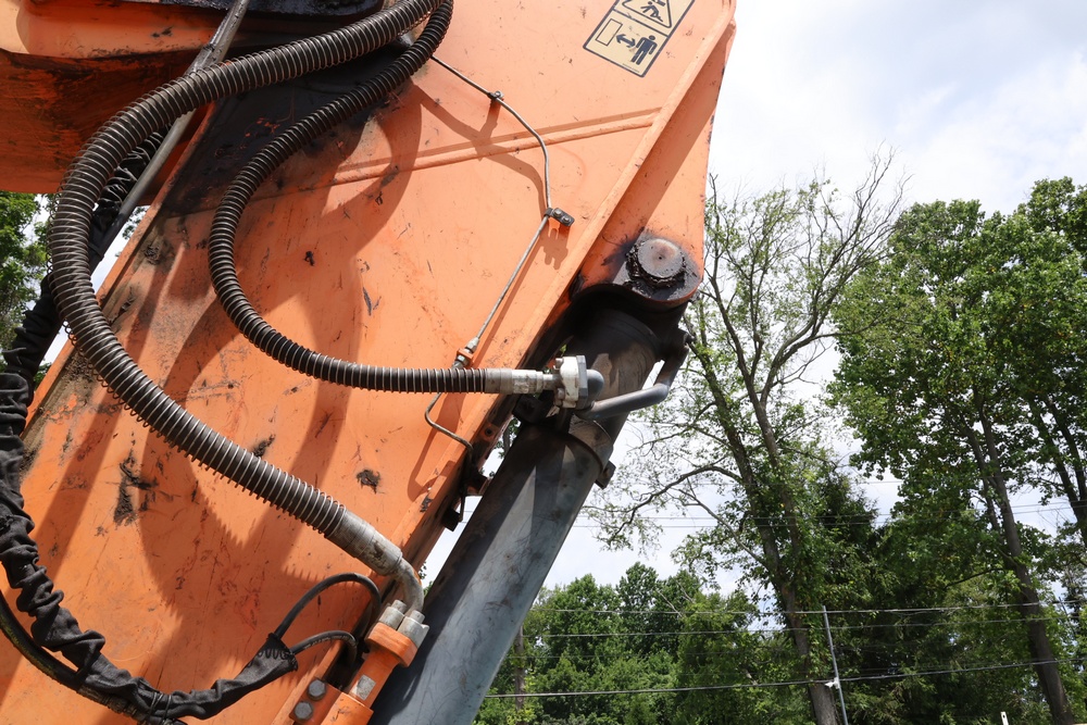 Doosan model DX350LC-5 excavator PIN: DQGCECBDKF1010179, aux hydraulic kit number 247747. With Scania engine type DC09 089A, heat, A/C, AM/FM radio, hour meter reading. Runs and operates. Key available.
