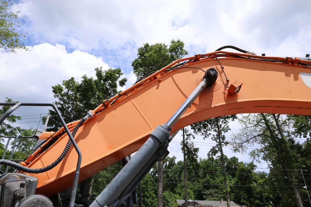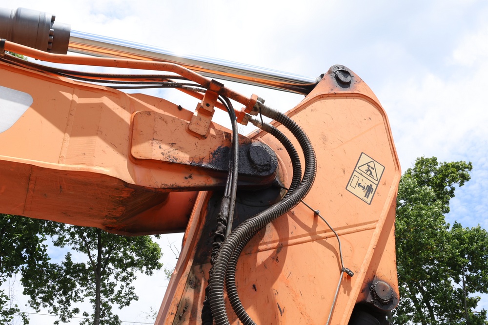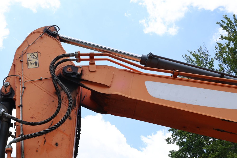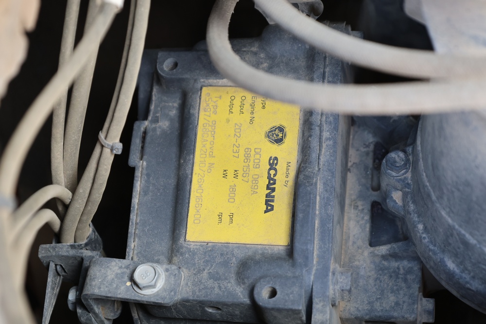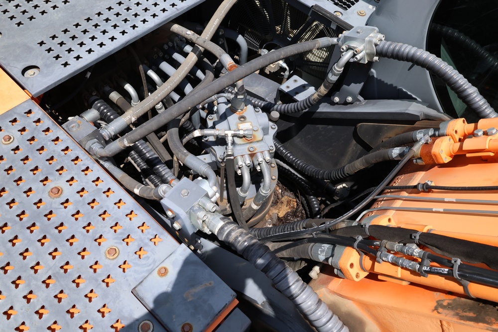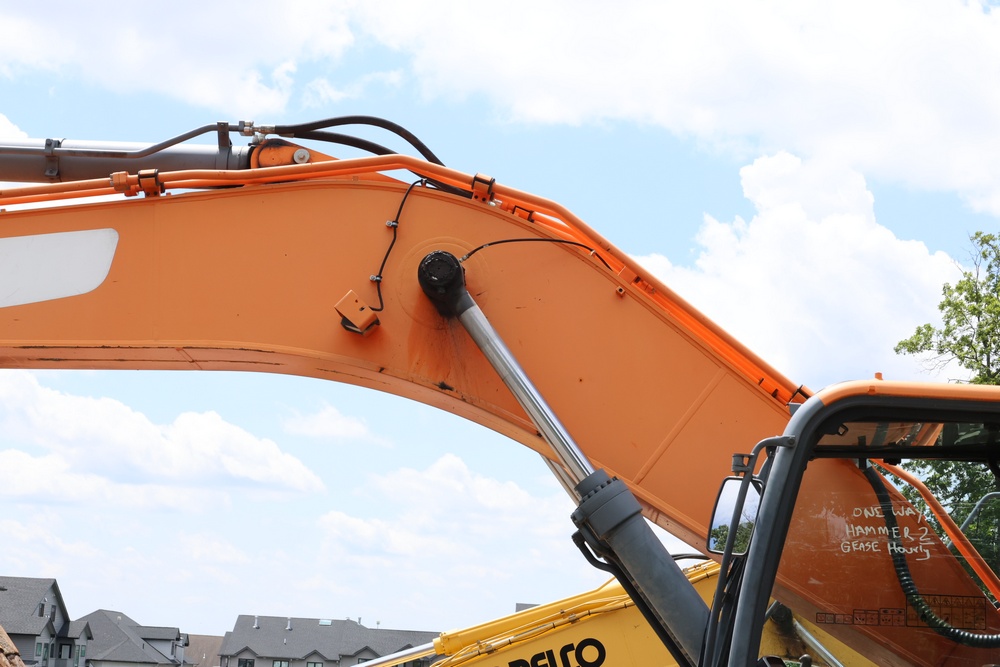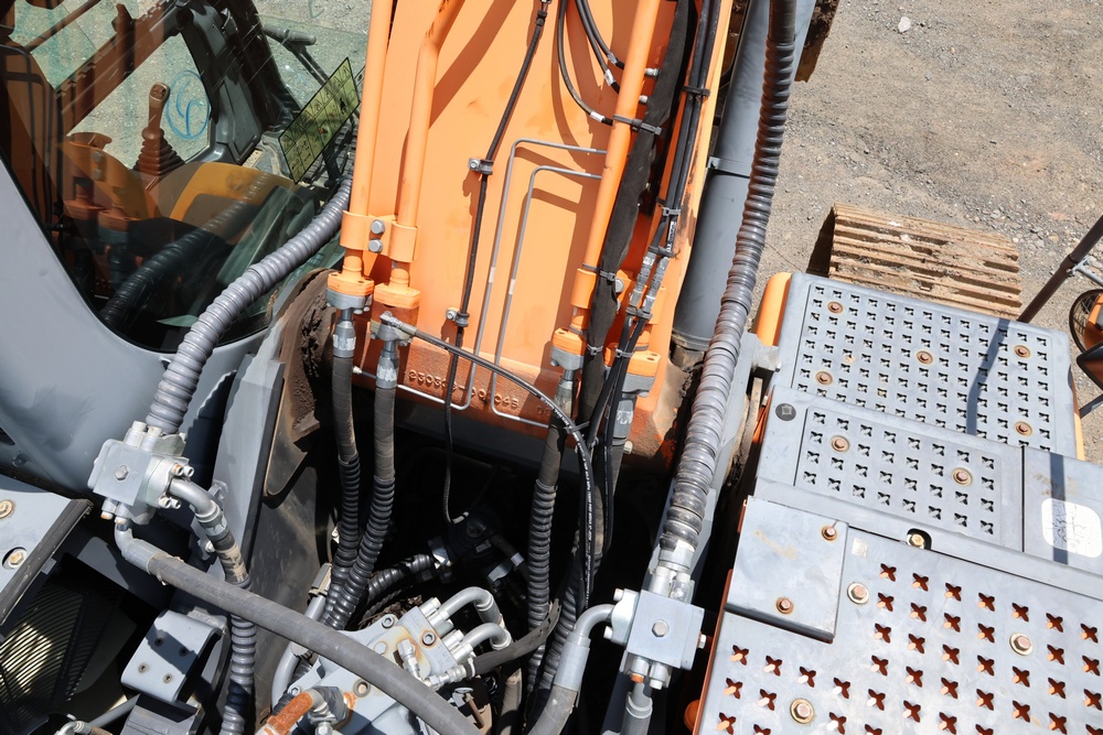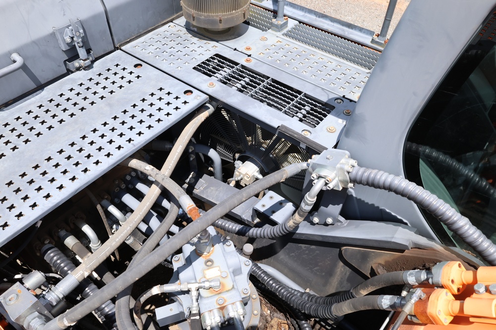 Doosan model DX350LC-5 excavator PIN: DQGCECBDKF1010179, aux hydraulic kit number 247747. With Scania engine type DC09 089A, heat, A/C, AM/FM radio, hour meter reading. Runs and operates. Key available.
