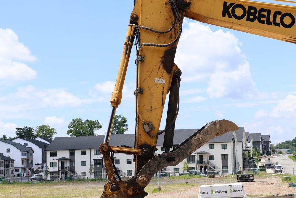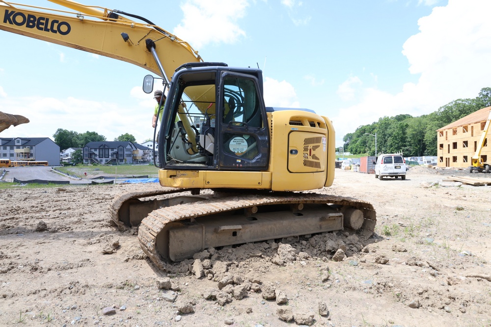 Items include Kobelco excavators; Doosan excavator; Doosan articulating wheel loader; Dynapac vibratory roller; Komatsu dozer; Bomag BMP 851 walk behind compactor; Kubota track skid steer; Sterling tandem axle dump truck; Eager Beaver tri-axle flat deck trailer; Geith excavator bucket; excavator ripper attachment; road plates; Universal skid steer bucket & more. Items are located in two different locations: New Square, NY & Congers, NY.