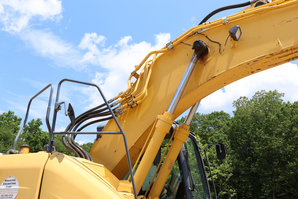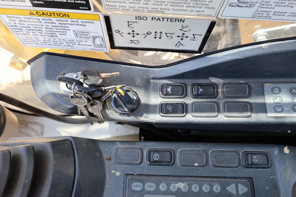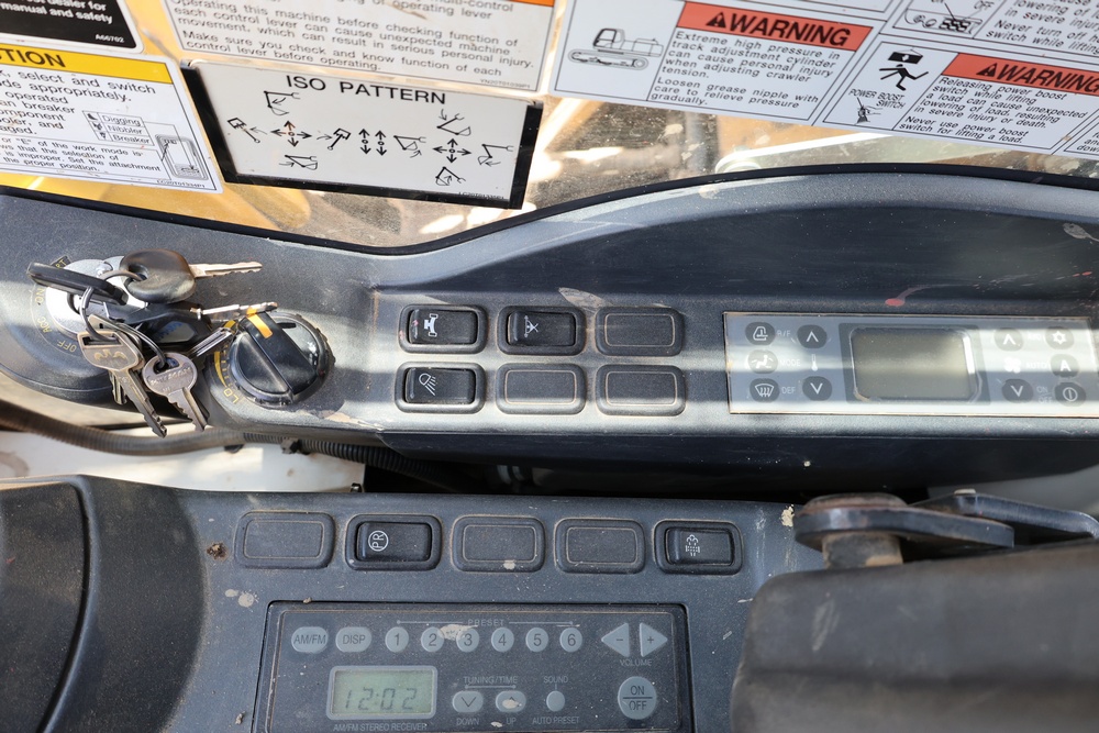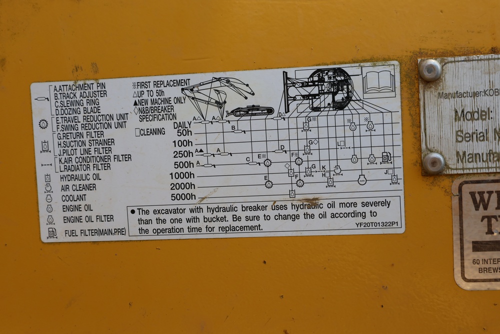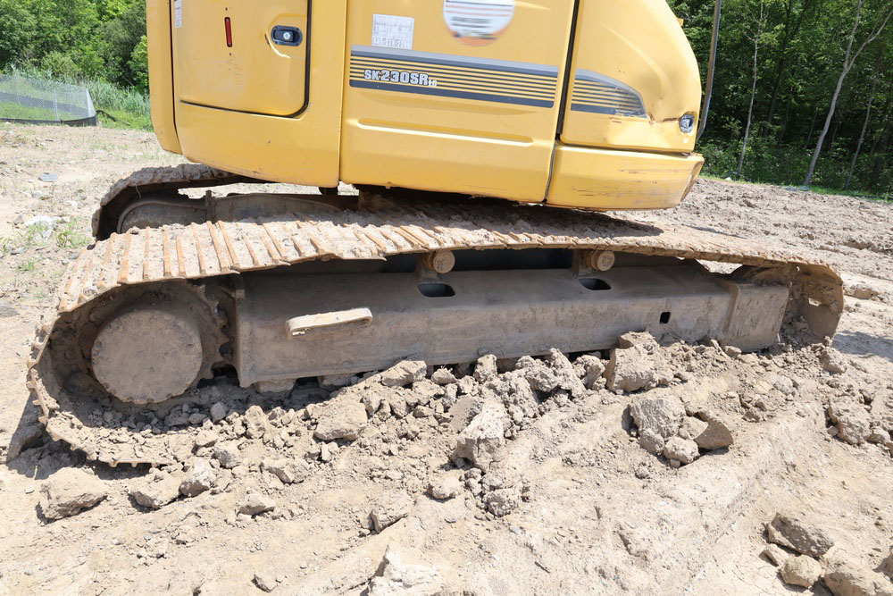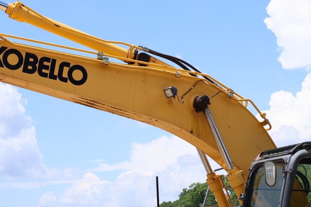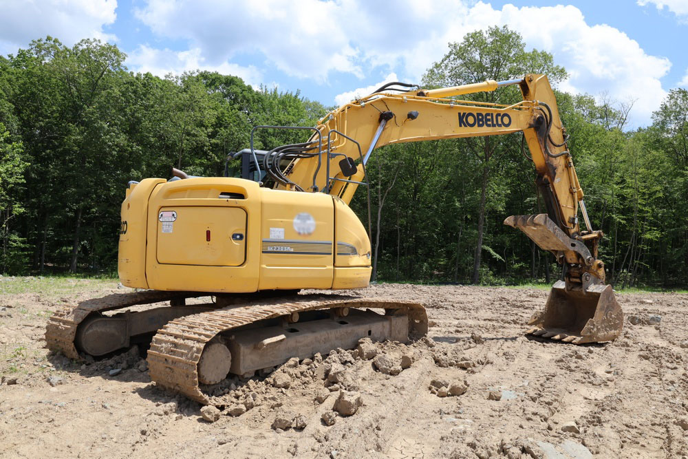 Kobelco model SK230SRLC-3 excavator serial number LA07-03160. With Hino 166 HP 5.123L engine, AM/FM radio, heat, A/C, hour meter reading 3916. Runs and operates. Key available.
