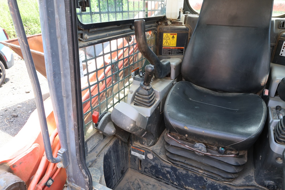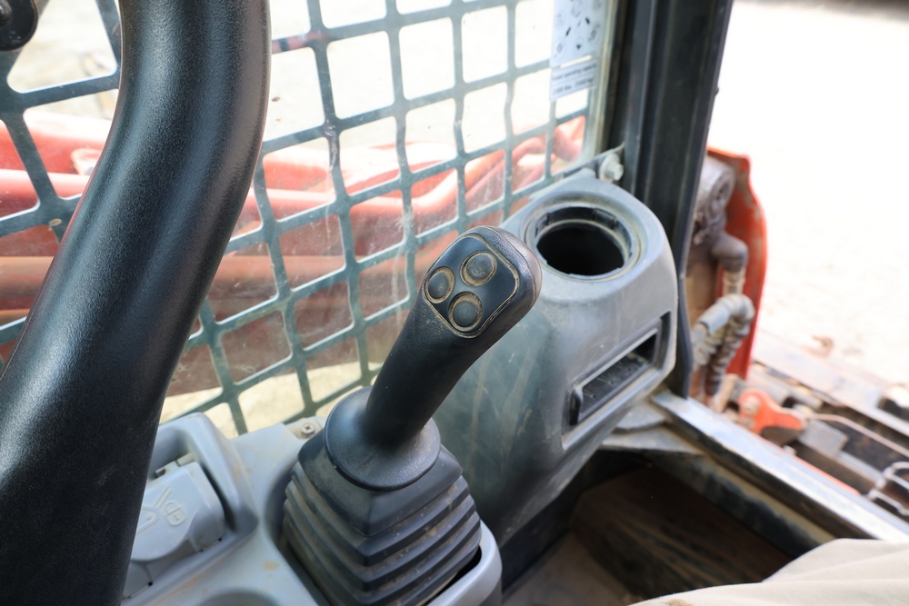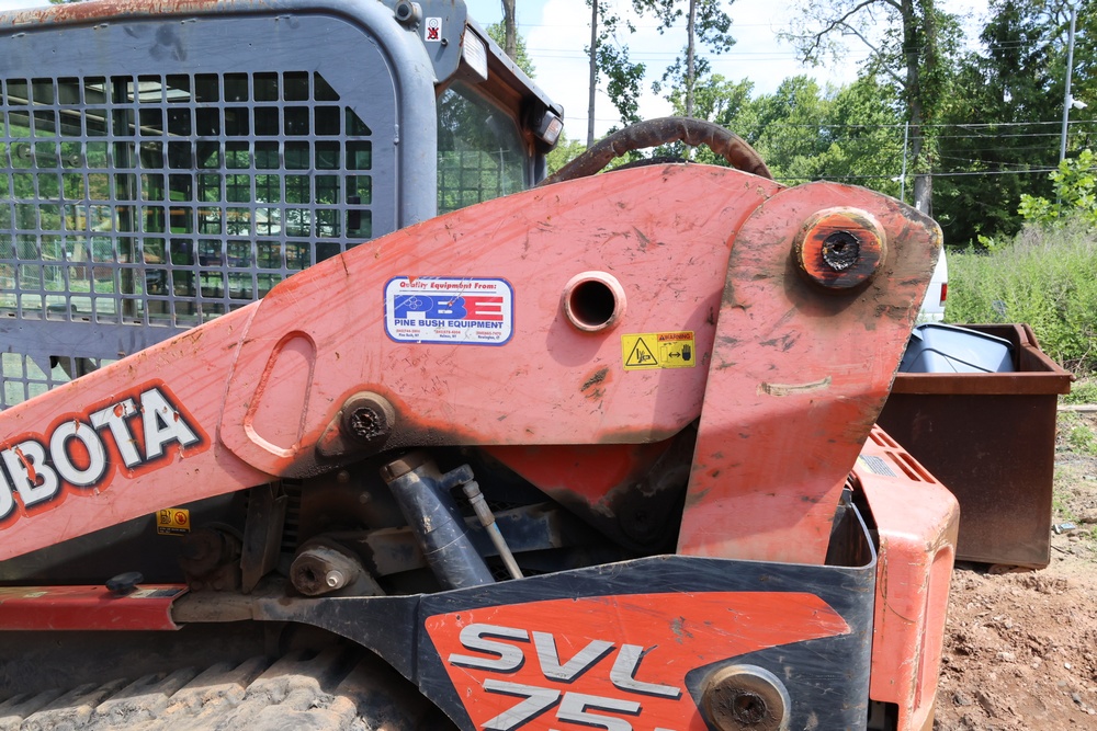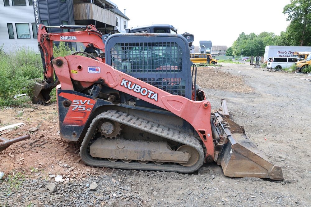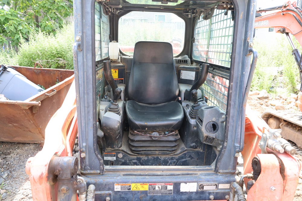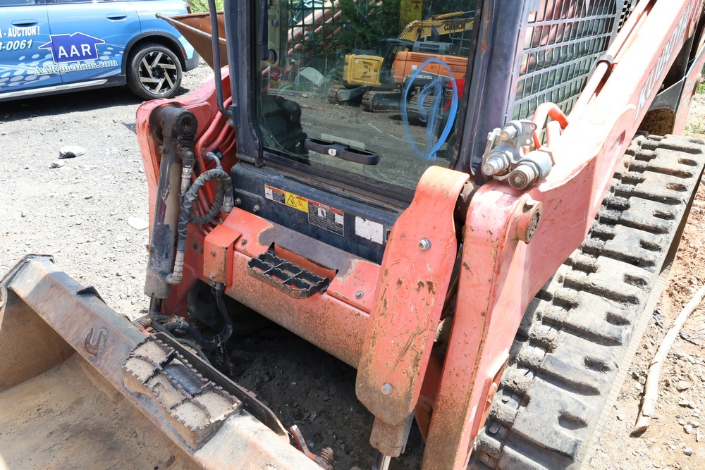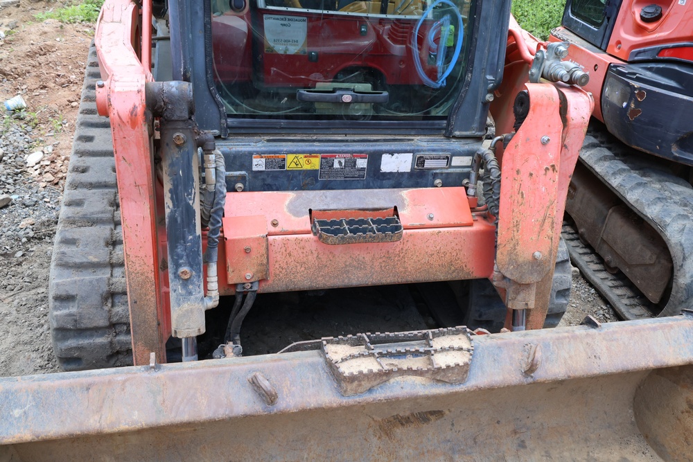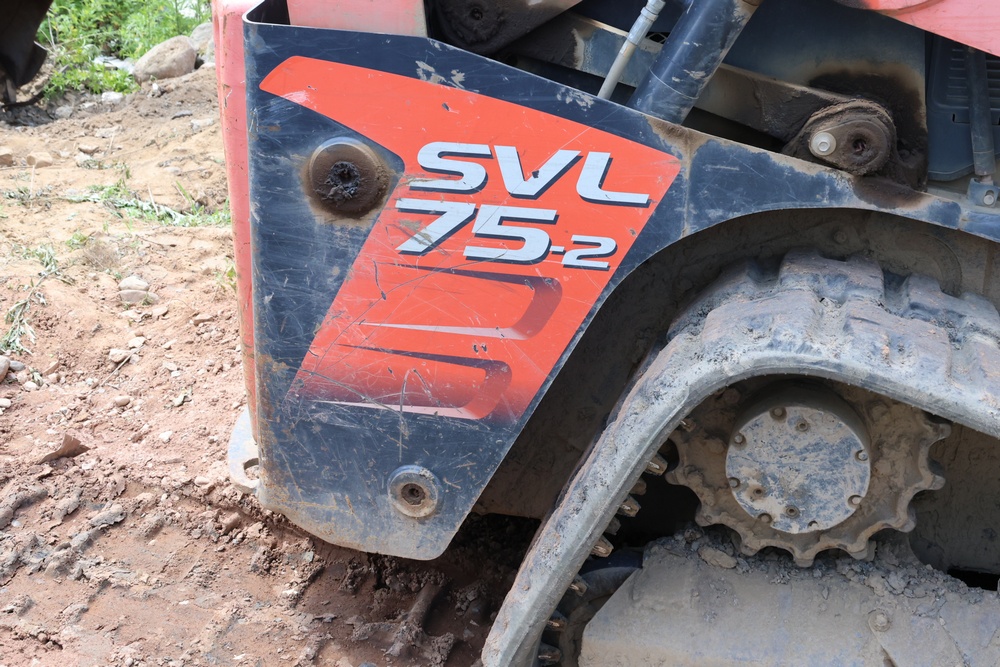 Kubota model SVL75-2 track skid steer PIN: JKUC0752L01S22842. Hour meter reading: 2489, with A/C, heat, and Paladin fork attachment. Runs and operates. Key available.