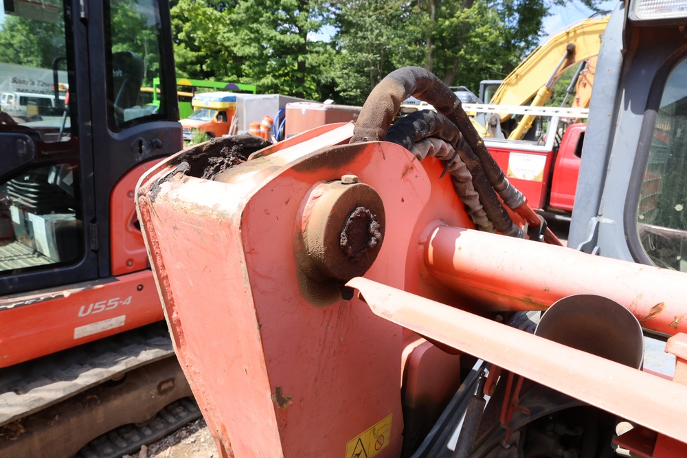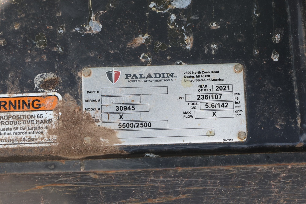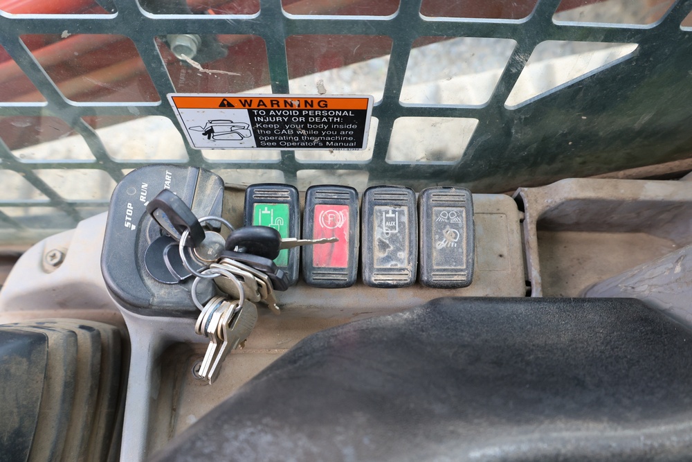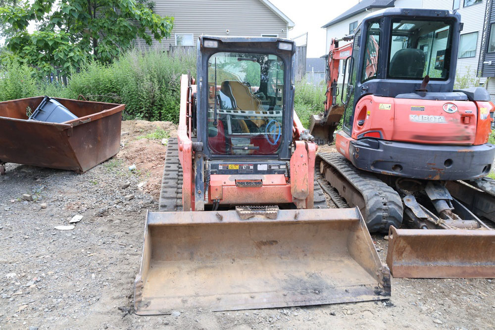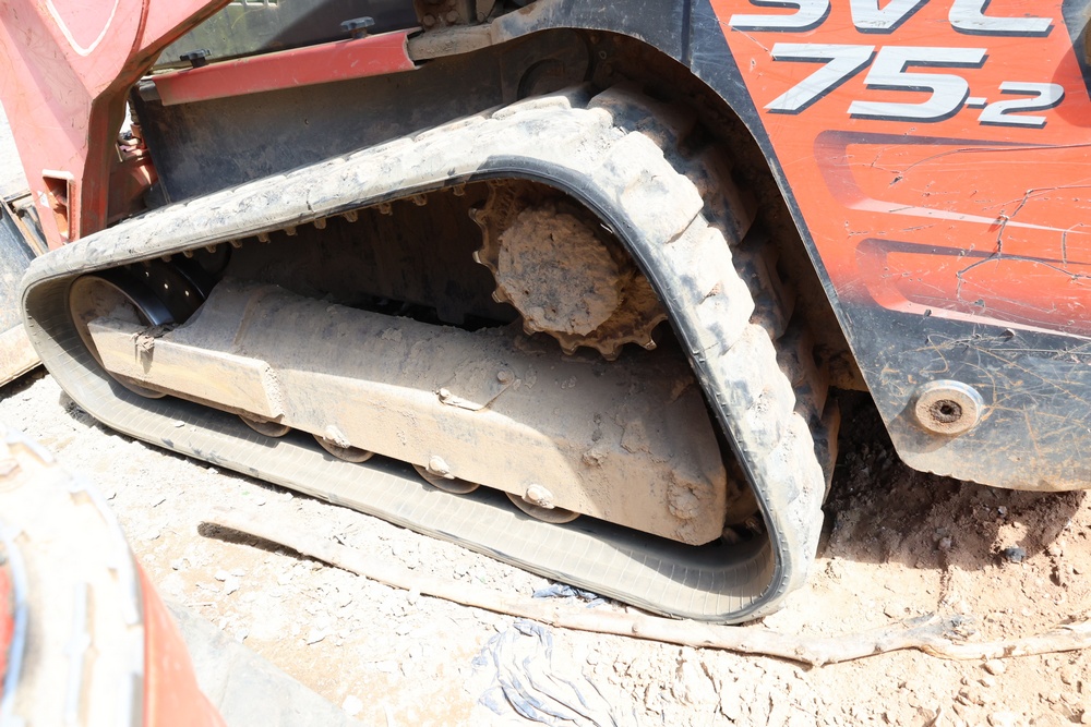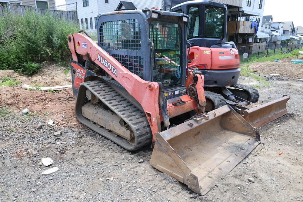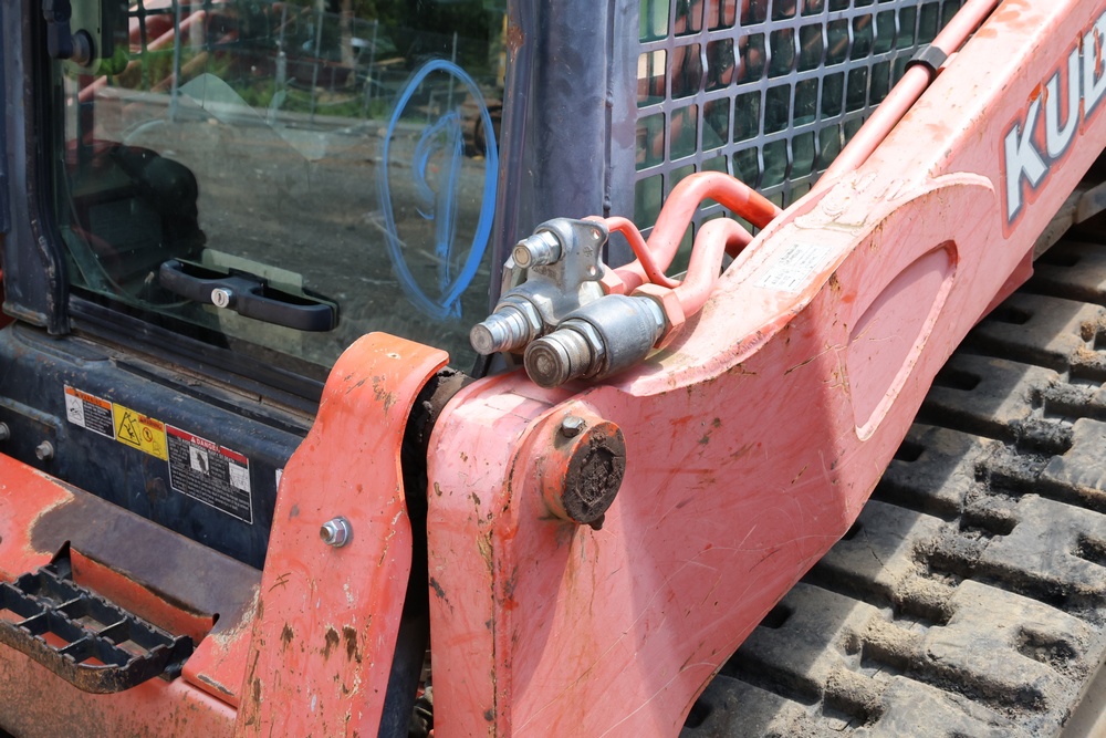 Kubota model SVL75-2 track skid steer PIN: JKUC0752L01S22842. Hour meter reading: 2489, with A/C, heat, and Paladin fork attachment. Runs and operates. Key available.