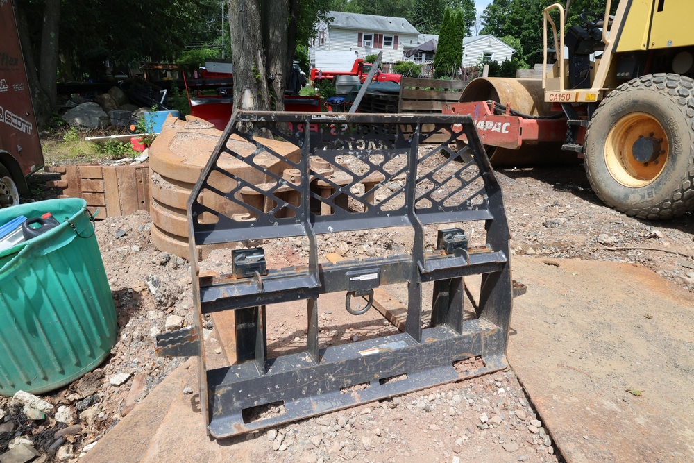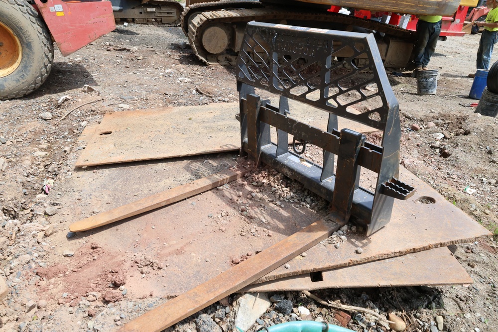 Items include Kobelco excavators; Doosan excavator; Doosan articulating wheel loader; Dynapac vibratory roller; Komatsu dozer; Bomag BMP 851 walk behind compactor; Kubota track skid steer; Sterling tandem axle dump truck; Eager Beaver tri-axle flat deck trailer; Geith excavator bucket; excavator ripper attachment; road plates; Universal skid steer bucket & more. Items are located in two different locations: New Square, NY & Congers, NY.