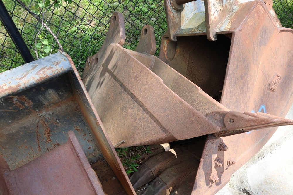 Items include Kobelco excavators; Doosan excavator; Doosan articulating wheel loader; Dynapac vibratory roller; Komatsu dozer; Bomag BMP 851 walk behind compactor; Kubota track skid steer; Sterling tandem axle dump truck; Eager Beaver tri-axle flat deck trailer; Geith excavator bucket; excavator ripper attachment; road plates; Universal skid steer bucket & more. Items are located in two different locations: New Square, NY & Congers, NY.