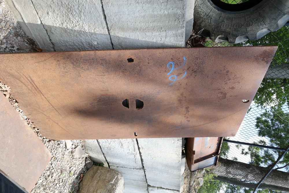Two road plates, largest approx. 11' x 68" x .25" thick.