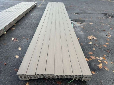 Grey Composite Decking 5/4"x6"x16'. By Fiberon, PVC Cap, Scalloped Bottom, Grooved Edge, Actual Dimensions 1"x5 1/4"x16', Grade: B Weight: 2000. Sold by: Linear Foot. Sold as: Price x Quantity.
