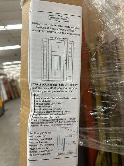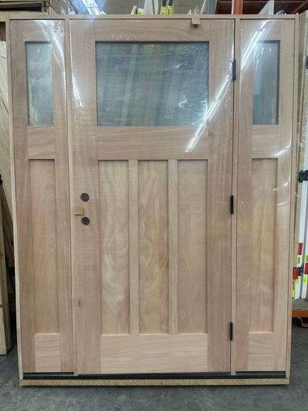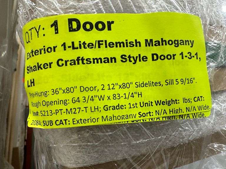 Exterior 1-Lite/Flemish Mahogany Shaker Craftsman Style 1-3-1 LH. Pre-Hung: 36"x80" Door, 2 12"x80" Sidelites, Sill 5 9/16", Rough Opening: 64 3/4"Wx83 1/4"H, Grade: 1st Weight: x. Sold by: Door. Sold as: Price x Quantity.
