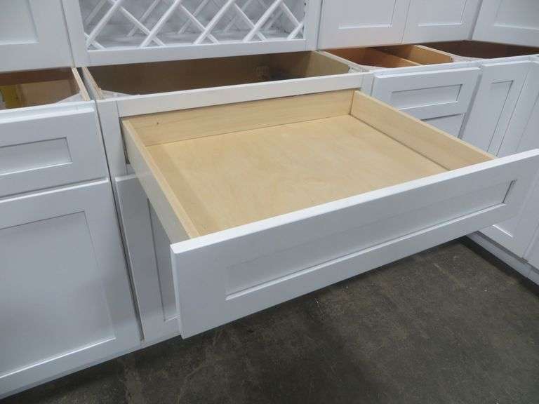 Arcadia White Kitchen Cabinet Set 10'x16'x10'. Ultimate Layout, 30" Walls, By GHI, Additional pieces may be available for order to the high bidder. Additional cabinets ship boxed, ready to assemble. -3/4” Solid Wood Face Frame -High Density Fiberboard Shaker Style Door and Drawer Front -1/2” Plywood Box Construction -5/8” Plywood Shelves -Full Overlay Doors and Drawer Fronts -Solid Wood Dovetail Drawer box -Soft Close Full Extension Drawer Gliders -Soft Close Doors -6-Way Adjustable Concealed Hinges -Additional Wall Cabinets Available in the Following Sizes; 30”, 36”, and 42”; if you would like a different size that what this cabinet is listed as please call our office at 607-865-6951 for a quote. Please Note: The WDC2430 listed in this set has been replaced by a WDC2436. Enclosed in each cabinet set will be a Build Sheet which lists the individual cabinets in each set. As the cabinets are palletized each cabinet will be checked off and signed by our staff member to ensure that the set is complete at the time of pick-up. Please keep this Build Sheet on hand because it will be required if there is an issue with your cabinet set. Cabinet issues will not be addressed without this build sheet. Weight: x. Sold by: Set. Sold as: Price x Quantity.