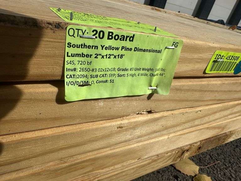 Southern Yellow Pine Dimensional Lumber 2"x12"x18'. S4S, 720 Board Foot, Grade #3 Weight: 1460. Sold by: Board. Sold as: Price x Quantity.