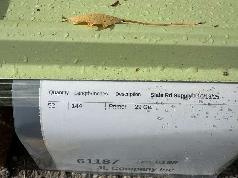 Green Primer Corrugated Metal Panel 3'x12'. 29 Gauge, 52 Pieces, Grade: B. Metal can be labeled as "B Grade" for many reasons. Some may include possible paint imperfections such as; off colors, light or heavy coating, dirt in paint, paint splash or blisters. They may contain steel imperfections such as; creases, wrinkles, wavy edges, dents, or general handling damage. When bidding on Grade B metal panels please don't assume that any two lots are the same. If you want to buy more than one (1) lot and need the same color please call us at 607-865-6951 to have us inspect the lots before you purchase. Weight: 1342. Sold by: Linear Foot. Sold as: Price x Quantity.
