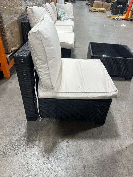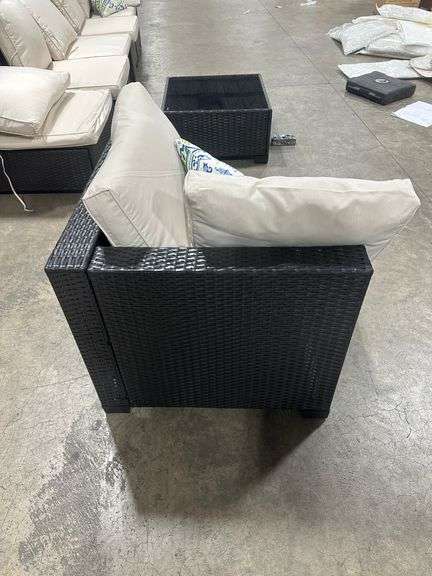 7 Piece Wicker Outdoor Patio Furniture Set - Coffee & Beige. Coffee & Beige style, Two boxes to set, Box A and Box B, 7 Piece set includes 4 piece couch, two chairs and one table Weight: . Sold by: . Sold as: Price x Quantity.