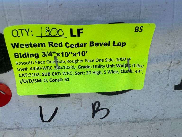 Western Red Cedar Bevel Lap Siding 3/4"x10"x10'. Smooth Face One Side, Rougher Face One Side, Grade: Utility Weight: x. Sold by: Linear Foot. Sold as: Price x Quantity.