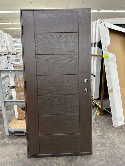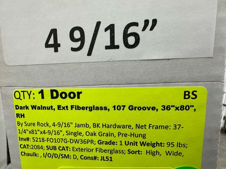 Dark Walnut, Ext Fiberglass, 107 Groove, 36"x80", RH. By Sure Rock, 4-9/16" Jamb, BK Hardware, Net Frame: 37-1/4"x81"x4-9/16", Single, Oak Grain, Pre Hung, Grade 1ST Weight: 95. Sold by: Door. Sold as: Price x Quantity.