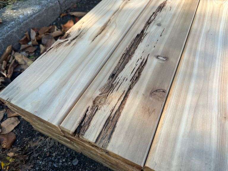 Western Red Cedar Decking 5/4"x6"x8'. S4SEE, Kiln Dried, Actual Dimensions 1"x5 1/2"x8', Grade: #3 *Condition Note: Splits/Cracks, Punky, Please See Photos* Weight: 630. Sold by: Board. Sold as: Price x Quantity.