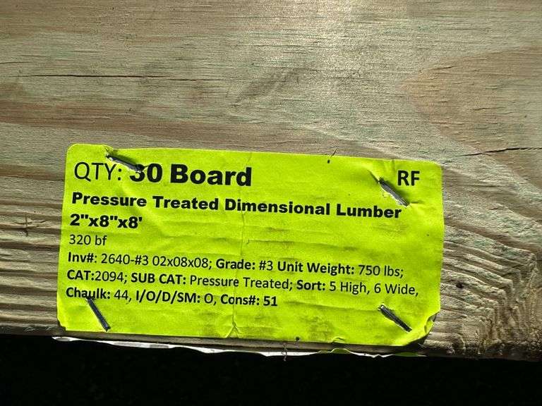 Pressure Treated Dimensional Lumber 2"x8"x8'. 320 Board Foot, Grade: #3 Weight: 750. Sold by: Board. Sold as: Price x Quantity.