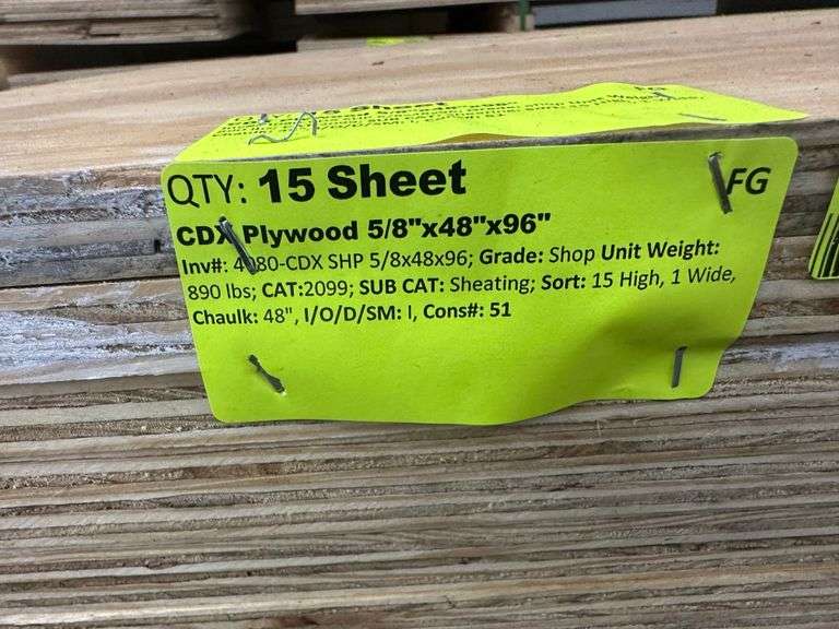CDX Plywood 5/8"x48"x96". Grade: Shop. Weight: 890. Sold by: Sheet. Sold as: Price x Quantity.