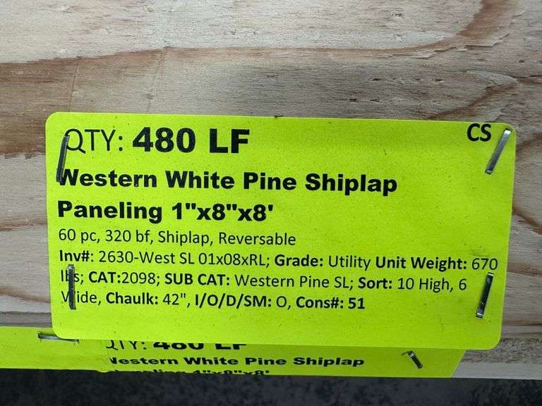 Western White Pine Shiplap Paneling 1"x8"x8'. 60 Pieces, 320 Board Foot, Shiplap Reversible, Grade: Utility *Condition Note: Splits/Cracks, Please See Photos* Weight: 670. Sold by: Linear Foot. Sold as: Price x Quantity.