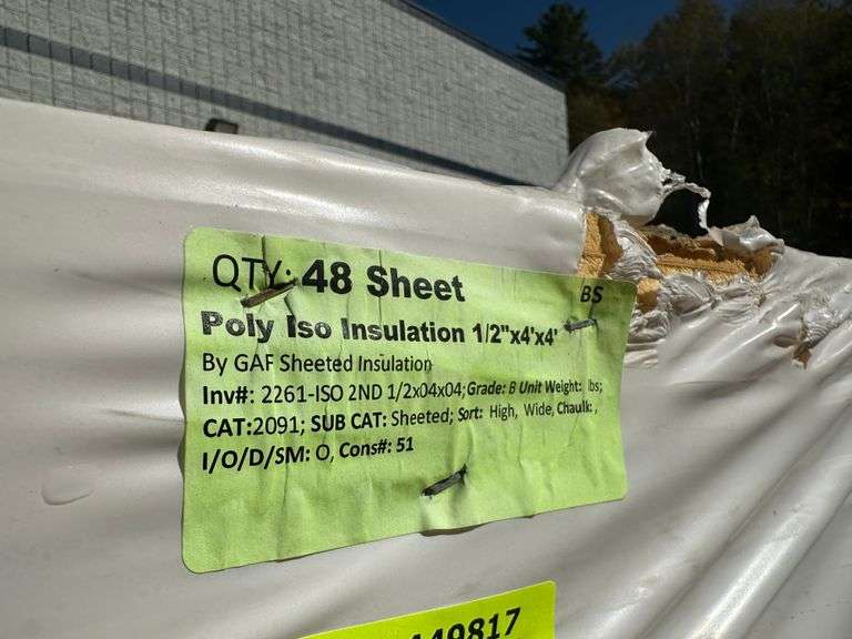 Poly Iso Insulation 1/2"x4'x4'. By GAF Sheeted Insulation, Grade: 2nd Weight: 540. Sold by: Sheet. Sold as: Price x Quantity.