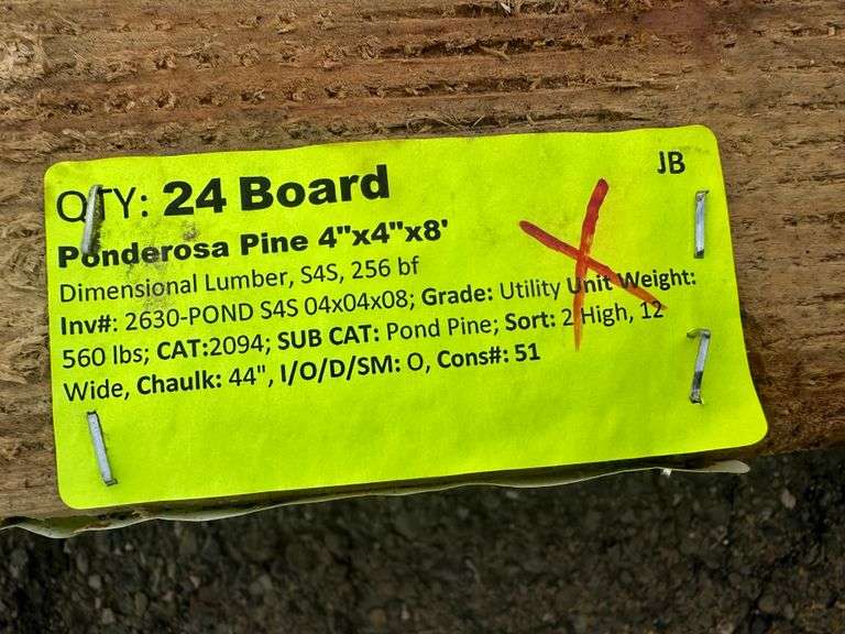 Ponderosa Pine 4"x4"x8'. Dimensional Lumber, S4S, 256 Board Foot, Grade: Utility * Condition Note: Mold, Weathering, Please See Photos * Weight: 560. Sold by: Board. Sold as: Price x Quantity.